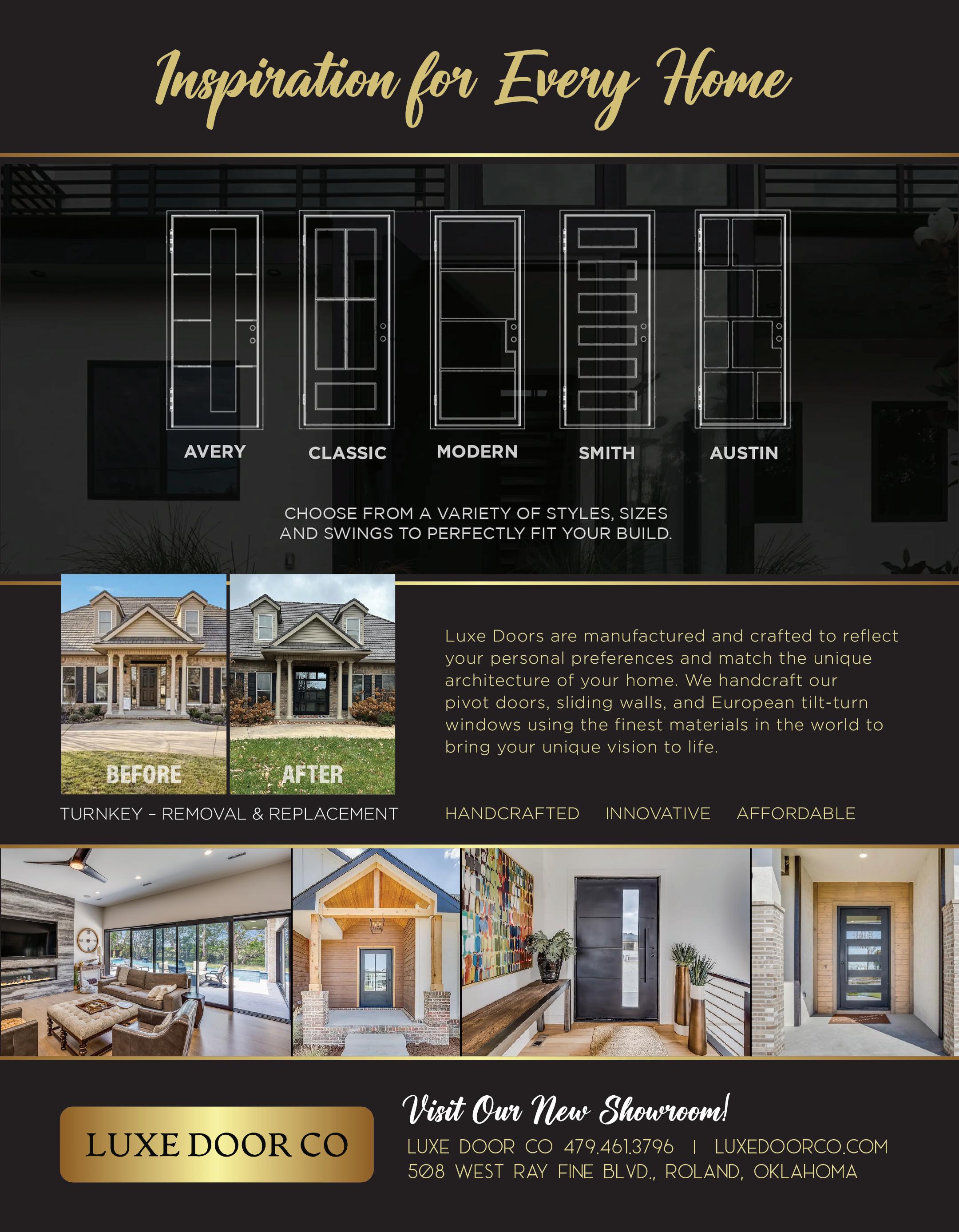Luxe Door Co. has a new, inviting showroom! Locally owned and operated, Luxe Door Co. proudly provides innovative door, glass wall, and window systems to the market. Backed by 16 years of experience in the construction industry as a general contractor, they have the expertise and understanding required to offer something unique to our community. They specialize in new construction, removal, and replacement of entry doors, sliding glass walls, and European tilt-turn windows. Their products are aesthetically pleasing and affordable and fill the needs of homeowners, interior designers, and contractors looking for a fully integrated, customizable, high-quality system. Call today and let Luxe help you create the home of your dreams.