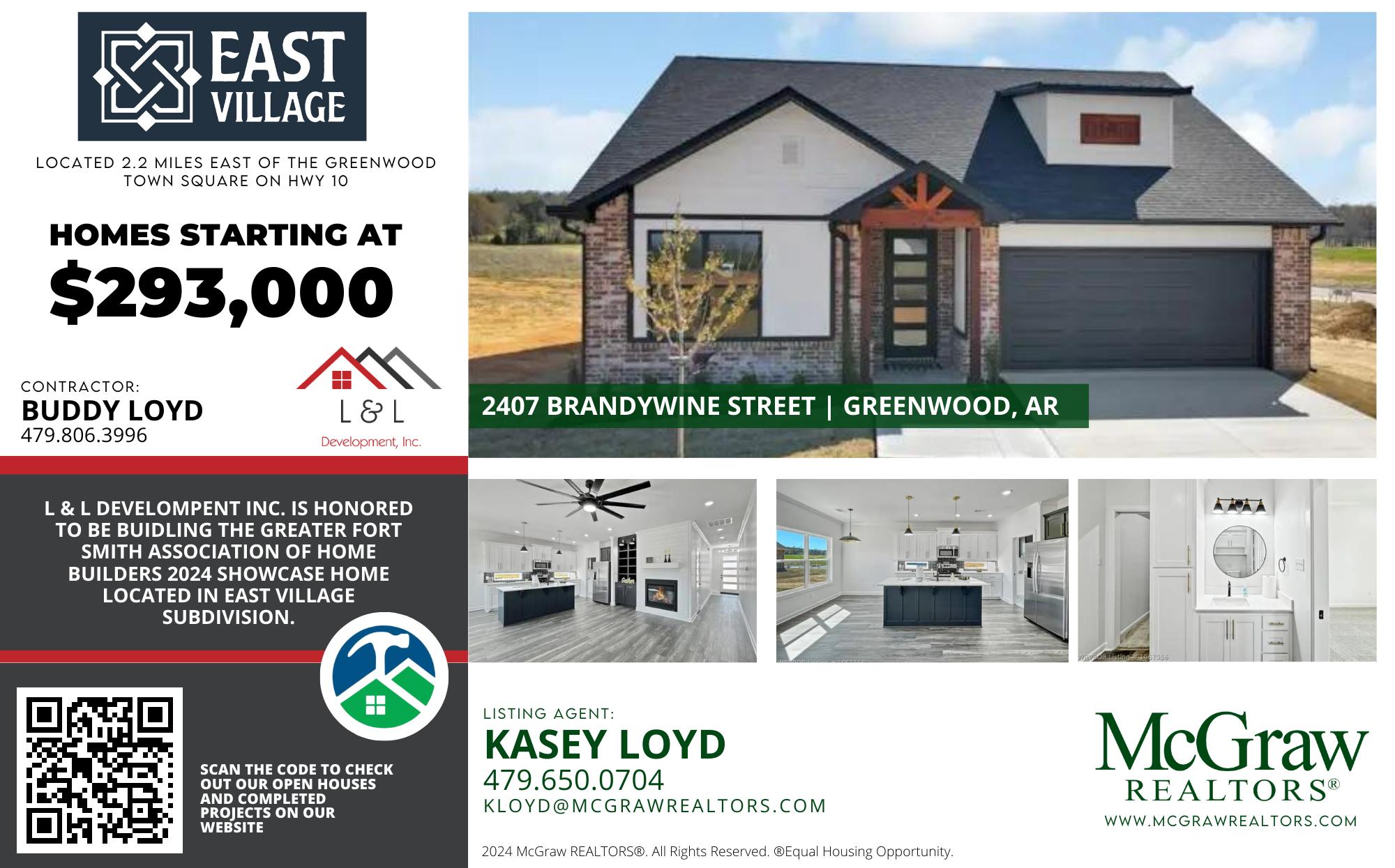 Discover the beauty of East Village Greenwood - homes available now in the all-new subdivision on the east side of the family-friendly City of Greenwood, Arkansas! Located only fifteen minutes from Fort Smith, Greenwood is known for its safety and fire protection, and it is one of the best school systems boasting academics, athletics, clubs, and activities. Be sure to visit with "Buddy the Builder" to discuss the extra benefits you receive when purchasing a home from L 6: L Development. Call Buddy at 479.806.3996 or Kasey with McGraw Realtors at 479.650.0704. Check us out at www. eastvillagegreenwood.com, on Facebook at L&L Development, or houzz.com. Greenwood – it just feels like home!
