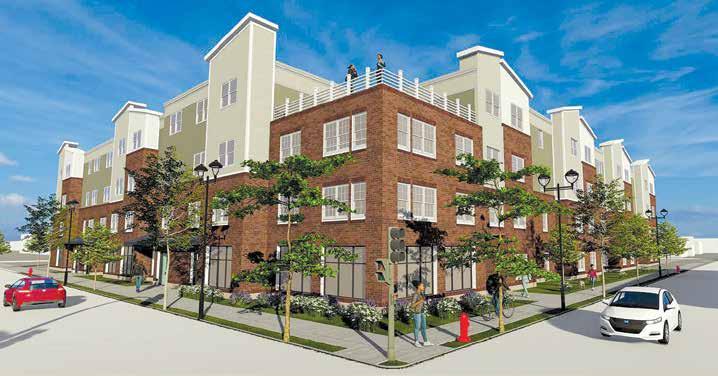 Community amenities include a multipurpose room with kitchenette to offer a place for social gatherings, a central laundry, computer room, fitness center, and rooftop terrace offering views of historic downtown Augusta. There will be an onsite leasing and management office. The ground level features a 4000-square foot commercial space that will be marketed for retail stores or professional business offices.