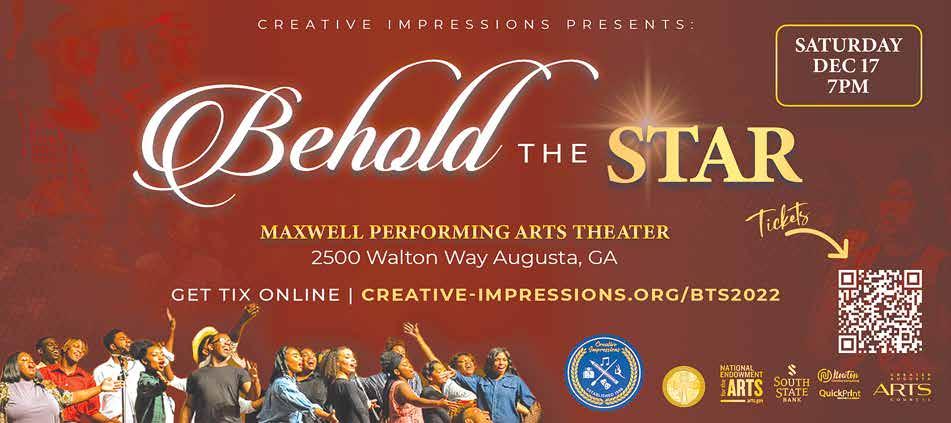 The Lucy Craft Laney Museum is accepting works of art for juried consideration for an upcoming “New & Emerging Artists” exhibition to be held Feb. 6 - March 24, 2023. The application is open to all artists 18 years and older (including Senior Citizens) who reside in the CSRA and are looking to showcase recent artwork. Artists may submit up to 2 works of art in any medium (painting, sculpture, mixed media, pho tography, digital, etc.) Twodimensional works cannot be larger than 24”x36” in size and must be matted/framed and ready to hang. Three dimension al (sculptures) are limited to a size that can be displayed on a table top. All submissions will
