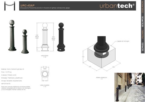 Peso: 12.076 kg Acabado: Pintado oxirón Embalaje: Paletizado y plastificado Anclaje: Mediante empotramiento IMPORTANTE: Para una correcta instalación es imprescindible rellenar completamente el interior con hormigón, y es aconsejable insertar varillas de rea.