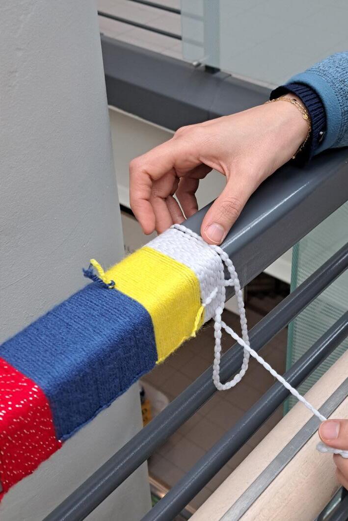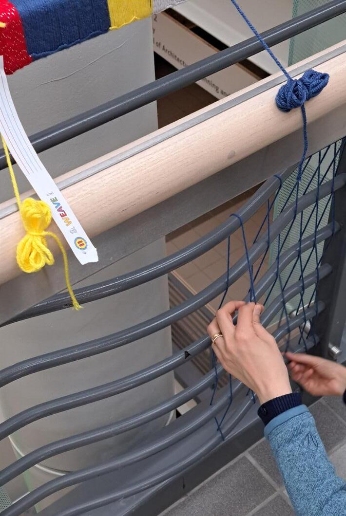 Collaborative Assemblage Dimensions examines the manifestation of co-creation. Functionally, materials fulfill specific roles— paracord offers support in Pop-Up Loom through knotting and tension. Spatially, a hallway is transformed into communal spaces, as illustrated in Pause & Weave!, where individuals contribute to an expanding woven surface. Relationally, weaving and knotting facilitate brief interactions and connections. Temporally, installations develop through gradual contributions. Symbolically, What Do You Represent? uses paper to invite expressions of identity.