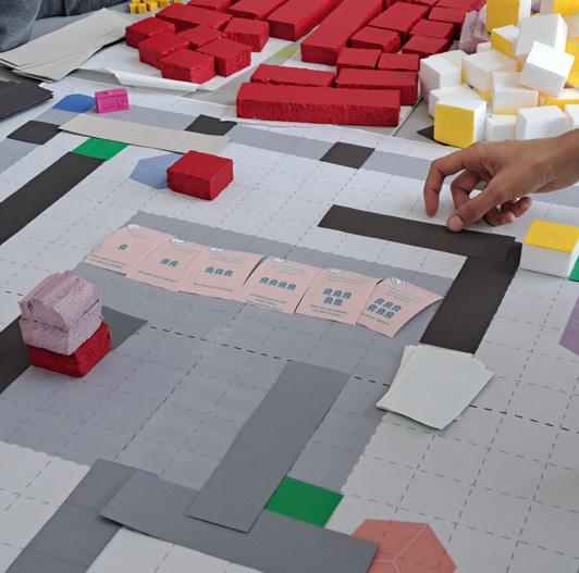 engage with materials, such as creating bracelets. At the group level, participants collaboratively design the process and actions. Institutionally, access to space, scheduling, and budget shape possibilities and constraints. Neighborhood and city influences manifest in public engagement, particularly in Connected Clusters, where gameplay fosters civic dialogue. Network dynamics examine how actornetworks form, evolve, and dissolve. These networks are nested, ranging from individual actions—such as weaving—to broader institutional and civic levels. They are heterogeneous, integrating materials, facilitation, interactions, and structures into adaptable systems. Temporally layered, projects like Message in a Bottle have transitioned over time. Distributed across campus, these networks are embedded in social and institutional contexts, responding to constraints such as access. Above all, they are relationally generative, producing physical artifacts and fostering new connections, reflection, and care.