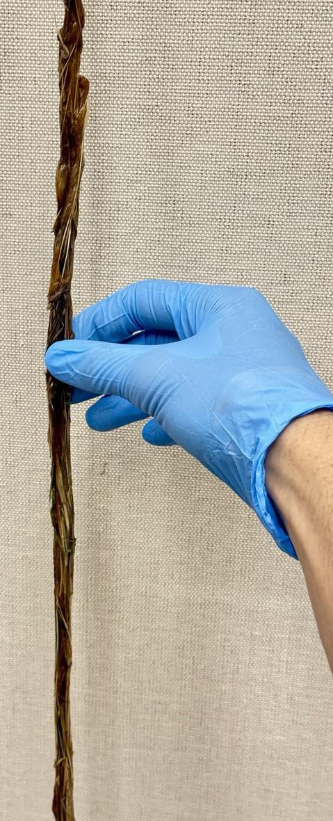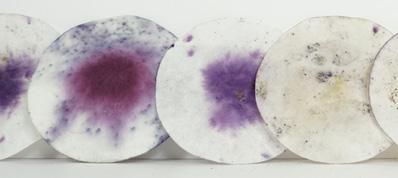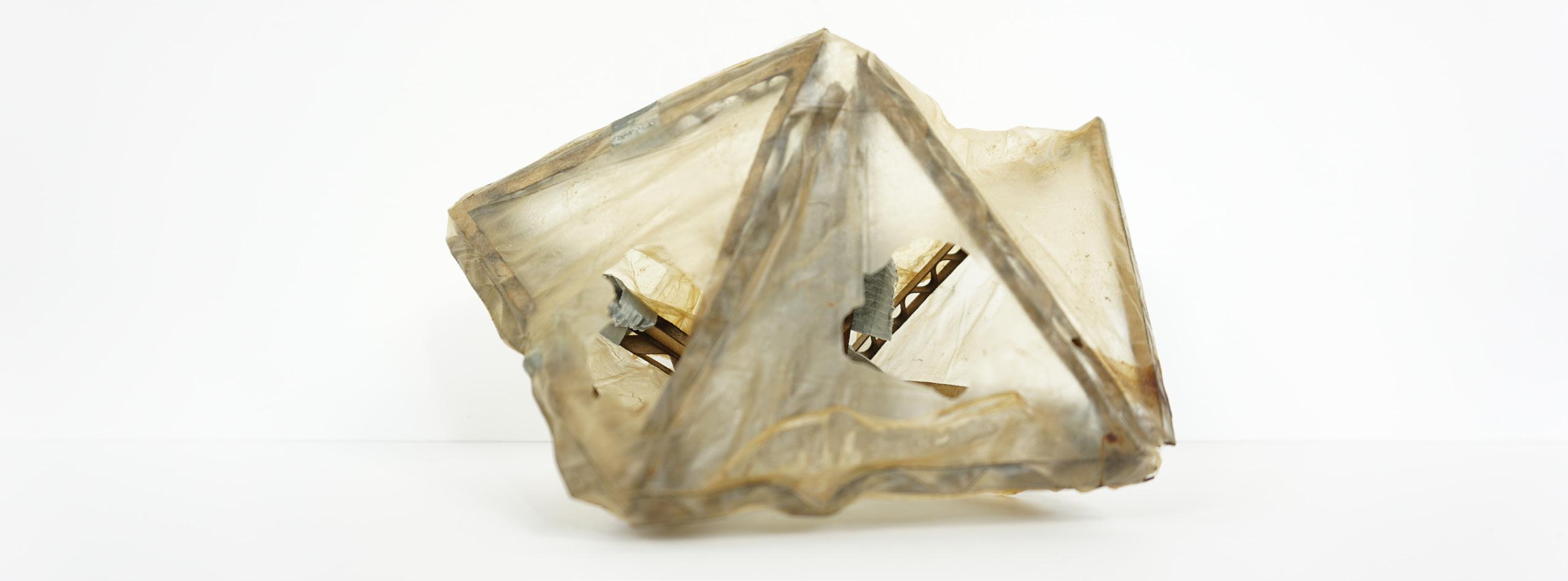 The process begins with fermenting the tea in shallow containers for one to two weeks, during which the SCOBY forms a thick cellulose membrane. After harvesting, the membrane is cleaned and air-dried for two to ten days, depending on its thickness. Jewelry wire is then shaped into skeletal forms, and the dried cellulose sheets are cut, stretched, and applied over the wire structures. Grass fibers may be embedded or layered to enhance the strength, texture, and visual interest, resulting in sculptural forms that blend organic growth with crafted structure.