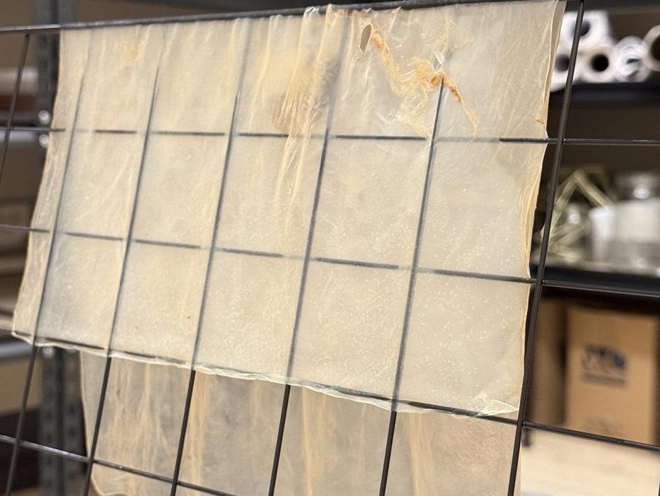 Bacterial cellulose is a natural material produced through the fermentation of sweet tea by a symbiotic culture of bacteria and yeast (SCOBY). This project explores its potential as a lightweight, biodegradable material for material exploration and collaborative design, using accessible ingredients and low-tech methods. The key materials include sweet tea, a live SCOBY, jewelry wire, and natural fibers such as grass.