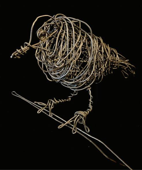 Steel-wire Blue Jay sculpture