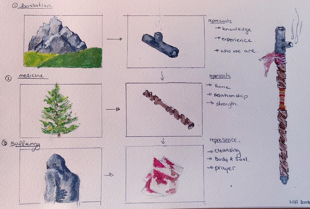 Students were asked to reflect on each Elder’s input using one of the following media: collage; diagram; storyboard; writing; found object; sculpture; photograph; or vlog – one of which had to be created in teamwork. These creative reflections formed part of the overall assessment but mainly acted as a tool for learning and cross-cultural exchange.