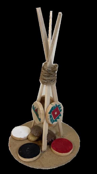 The aspect of Rod Hunter’s talk that resonated with me the most was the Sun Dance. I decided to research this ceremony further. The Sun Dance establishes and maintains kinship with all the people’s relatives, including other humans, the animal and plant relatives of this earth, and the cosmic relatives of the spirit realm. In my discoveries, I found and watched a documentary by the National Film Board of Canada called “Circle of the Sun.” It was the first time that the Sun Dance was captured on film and showed the Kainai (Blood Nation) in Alberta as they celebrated the Sun Dance. One of the major motifs of this film and the ceremony is the circle. According to the filmmaker, “Some observers say a key to the old religion is to be found in the circle. The power of the world works in circles. The sky is round. The stars and the earth are round. The seasons form a great circle. The life of a man is a circle from childhood to childhood. And so it is in everything where power moves.” This sculpture represents my explorations of the Sun Dance ceremony, the significance of the circle and establishing/ maintaining connections.