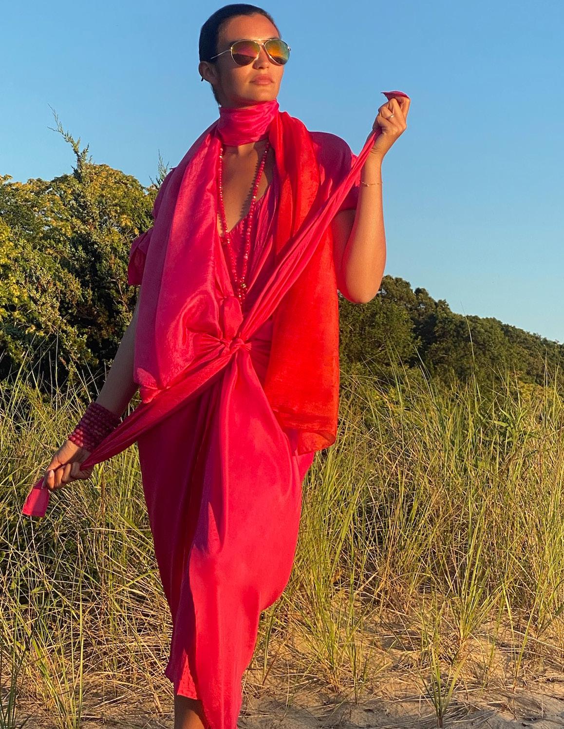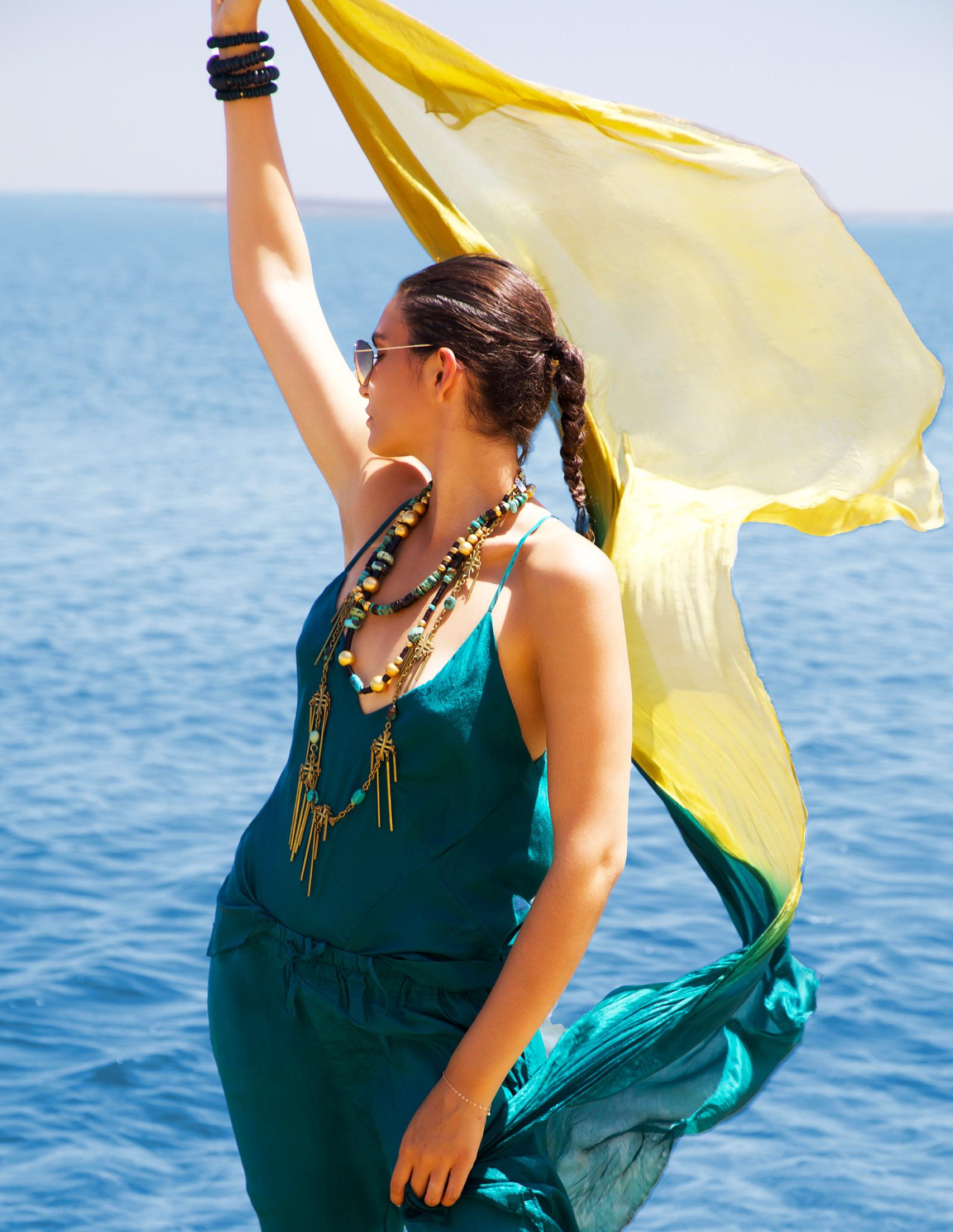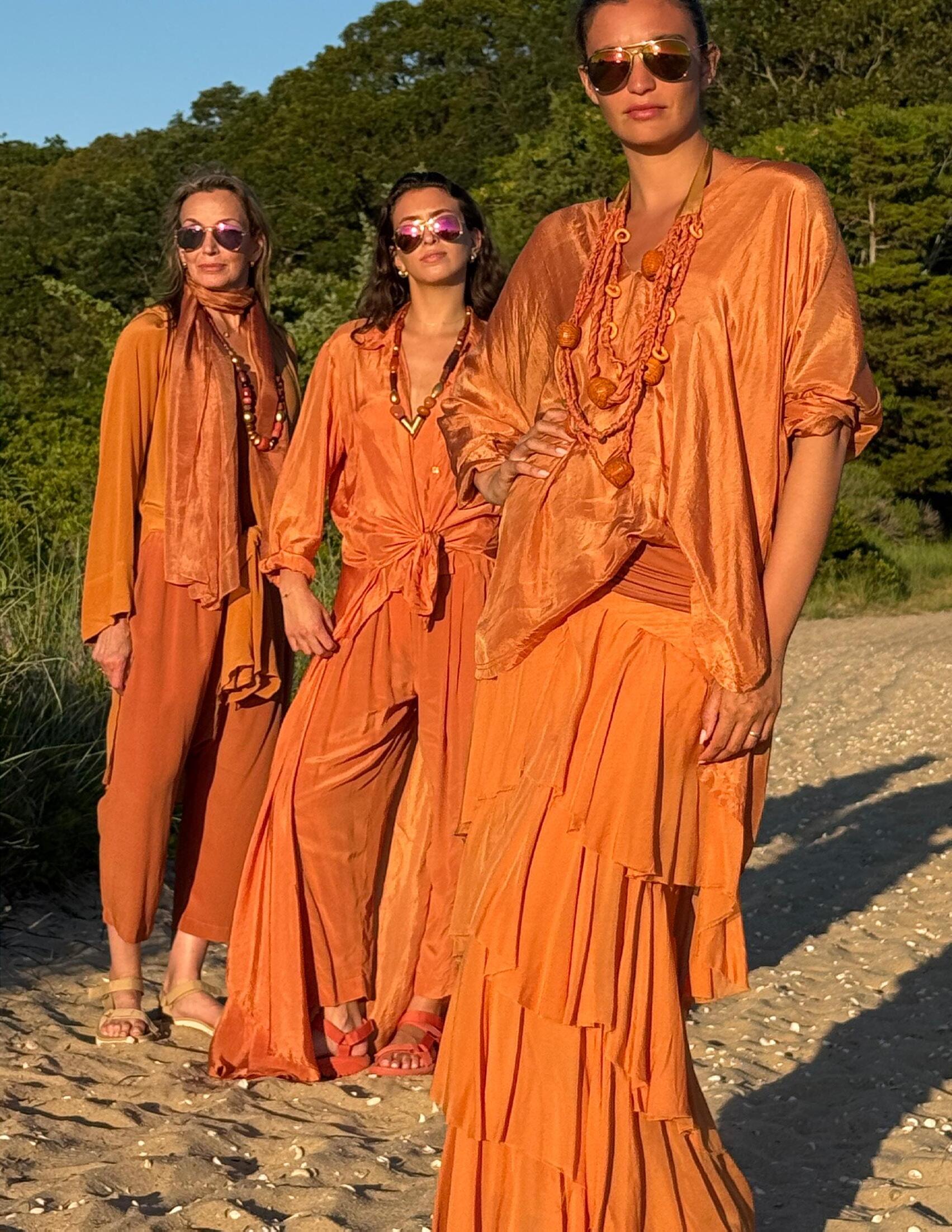 Our versatile wrap-and-tie pieces transform effortlessly from day to evening, layering beautifully in vibrant summer hues that celebrate life’s endless possibilities
