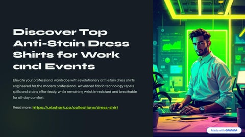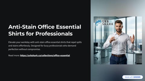 Urbshark is a modern apparel brand designed in Canada, offering innovative clothing that combines style, comfort, and advanced fabric technology. The brand specializes in premium anti-stain dress shirts that help professionals stay confident and polished throughout the day. These shirts are crafted with natural, PFAS-free fabrics and advanced stain-resistant technology that repels spills while remaining breathable and comfortable. Perfect for work and daily wear, Urbshark also offers anti-stain office essential shirts that maintain a clean and sharp appearance even during busy schedules. Their collection of easy-care everyday shirts is designed to resist stains, odors, and wrinkles, making them ideal for modern professionals who value convenience, durability, and effortless style in their wardrobe.