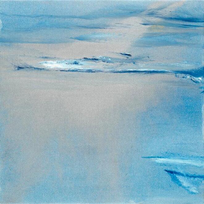 The artist depicts the formation of feelings as we peek into our depths through the windows to see the evolution of thoughts and matter. A rolling hill, or perhaps a calming wave, sets the foundation. The Heavens, as represented by splashes of ultramarine, are attainable; Prayer reaches utmost heights . The future is bright.