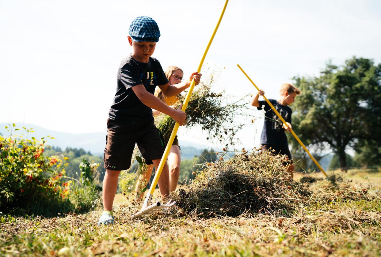 Kannst du die einzelnen Gewächse im Kräutergarten auseinanderhalten und ihren Duft unterscheiden? Hier gedeihen Salbei & Rosmarin, Thymian & Liebstöckl, Basilikum & Kamille und noch viele Heilpflanzen mehr. Deine Bäuerin und dein Bauer am Biobauernhof offenbaren dir gern alle Geheimnisse ihres Bauerngartls. Gemeinsam erstellt ihr gesunde Tees, Kräuterkissen und Naturkosmetika. Das sind nicht nur wertvolle Mitbringsel für die Daheimgebliebenen, sondern auch tolle und nachhaltige Erinnerungen für dich selbst.
