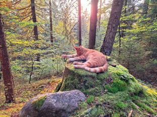 Unsere Tiere: 3 Katzen, Hühner und Rinder.