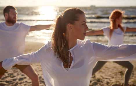 vibrant sky. The proximity to nature encourages mindfulness, fostering inner peace. The calming effect of the sea and open sky makes beach yoga an ideal stress-reliever, rejuvenating both body and mind.