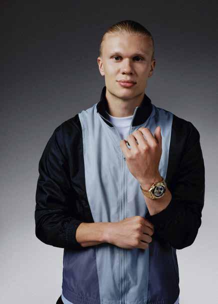SAMARBEIDET mellom Breitling og Manchester City-spissen er like uvanlig som materialet. Haaland var tett involvert i designprosessen, og ifølge Breitling var det han som ønsket noe helt eget. «Jeg ville ha noe som ingen andre har. Chronomat traff meg med en gang, og meteoritt-skiven gjør at ingen klokker blir like,» uttalte Haaland i forbindelse med lanseringen. De to modellene som lanseres er Chronomat Automatic GMT 40 i stål med platina, begrenset til 500 eksemplarer, og Chronomat B01 42 i rødt gull, begrenset til 250. Begge har meteorittskive, Haalands initialer på sekundviseren og et baklokk med draktnummer 9