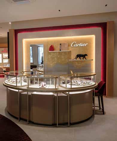 ❶ Urmaker Bjerke i Bergen har fått nytt interiør, designet og produsert i Norge. ❷ Egne shop-in-shop løsninger gir produsentene spillerom. ❸ Det er lagt til rette for gode møter med kundene. ❹ Cartier er endelig på plass i Bergen. ❺ I serviceavdelingen kan du se urmakere i arbeid på verkstedet.