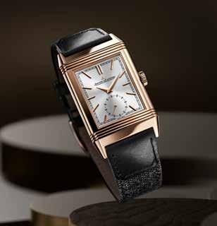 Jaeger-LeCoultre Reverso Tribute Small Seconds kommer i en versjon som er inspirert av historien og den første generasjonen Reverso hadde nettopp en sølvfarget urskive. Her skaper den en vakker kjølig kontrast til den rike gløden i rose gullet i urkassen. Remmen er i kalveskinn og canvas. Selv om klokken forholder seg til en lang historie er den ikke på noen måte utdatert, nå er den også slankere og mer elegant enn noensinne. Klokken er 45.6 x 27.4 mm, og bare 7.56 mm tykk, og drives av Jaeger-LeCoultre drives av det egenproduserte og manuelle urverket Jaeger-LeCoultre Calibre 822.