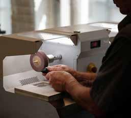 ❶ Sentrering av glass og indeks ring. ❷ Lenker og bezler på vei til polering. ❸ Poleringsverksted med egen poleringsmester. ❹ Riktig verktøy til jobben.
