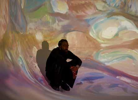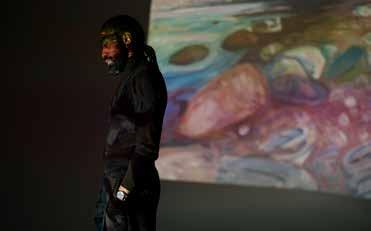UTSTILLINGEN ARIF PÅ MUNCH finner du i niende etasje, og du beveger deg gjennom tre store rom. Underveis finner du flere referanser til konkrete verk av Munch, men først og fremst er det et blikk inn i Arif sin verden. Sammen med den kinesisk-amerikanske filmskaperen Andrew Thomas Huang og den engelske regissøren Wudka har Arif jobbet fram en emosjonell reise gjennom musikk, film, lys, bilder og interaktivitet. Et av hovedelementene er filmen som vises på en 18 meter bred skjerm som tar Arif fra Oslo til Zanzibar og tilbake. I en reise på jakt etter identitet, uavhengig av tid og rom, følger vi en utforskende Arif gjennom stemninger og følelser i scener som har likhetstrekk med flere verk og temaer som går igjen hos Munch.