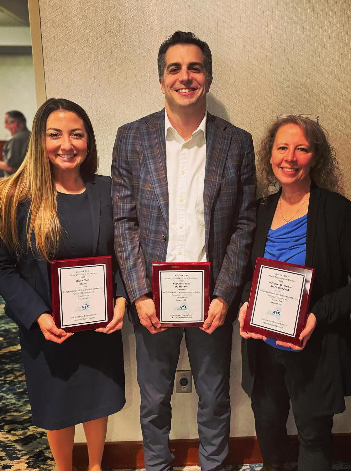 • Over the last two-years, the New York State Division of the American Trauma Society has awarded our program with the following awards: Trauma Medical Director of Distinction, Trauma Educator of Distinction, Trauma Registrar of Distinction, Injury Prevention and Outreach Coordinator of Distinction, and Trauma Performance Improvement Coordinator of Distinction.