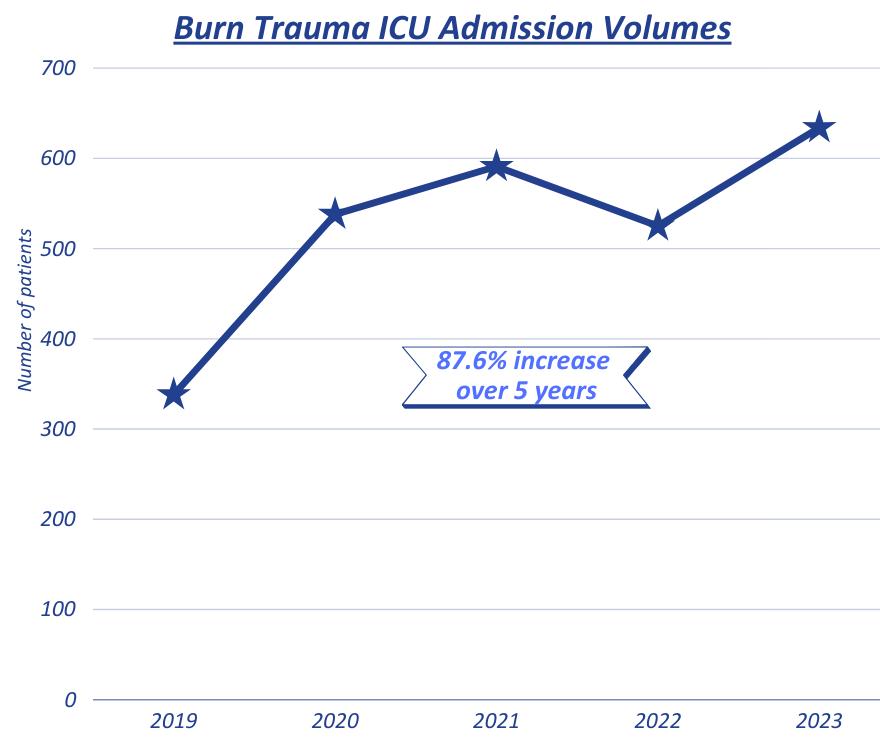 The Division houses a long-standing ACGME-accredited one-year surgical critical care fellowship which provides significant flexibility for trainees to tailor their education to their unique goals. Fellows rotate through our busy burn trauma, surgical, and neuromedicine intensive care units and participate in the acute management and operative care of injured patients. We are proud to train the next generation of surgical critical care leaders.