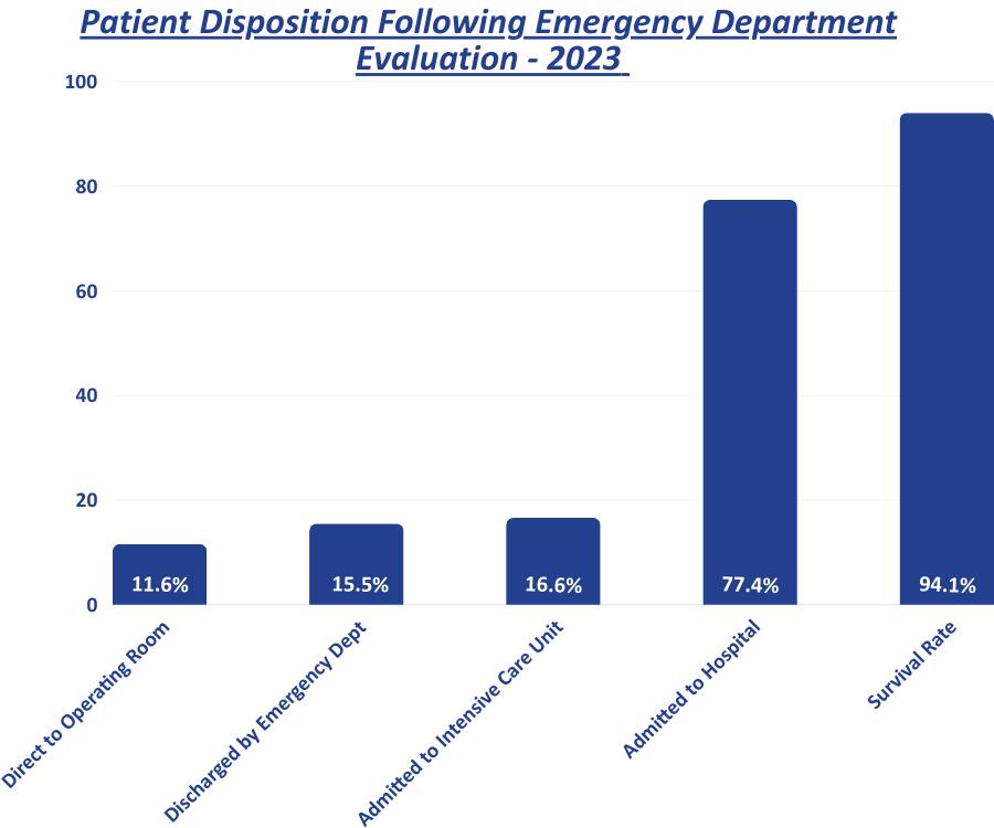 In January 2024, we were re-verified by the American College of Surgeons Committee on Trauma as a Level 1 trauma center (the highest designation) for another three-year term. The reviewers remarked that the trauma care provided at our center should be the gold standard for all centers. We were also to noted to have zero deficiencies within our final report – a rare feat within trauma center reviews.
