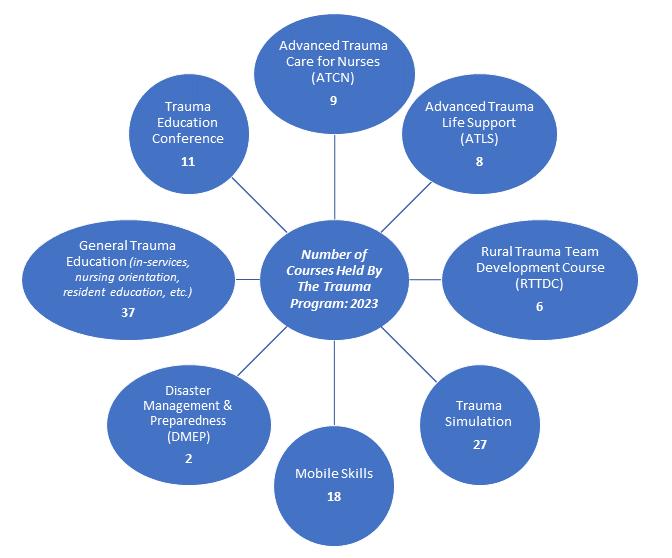 the Upstate region to offer this important course. In 2023, the Trauma Program taught DMEP in Albany for the State Trauma Advisory Committee and in Puerto Rico for the resident paper competition for a group of regional surgeons