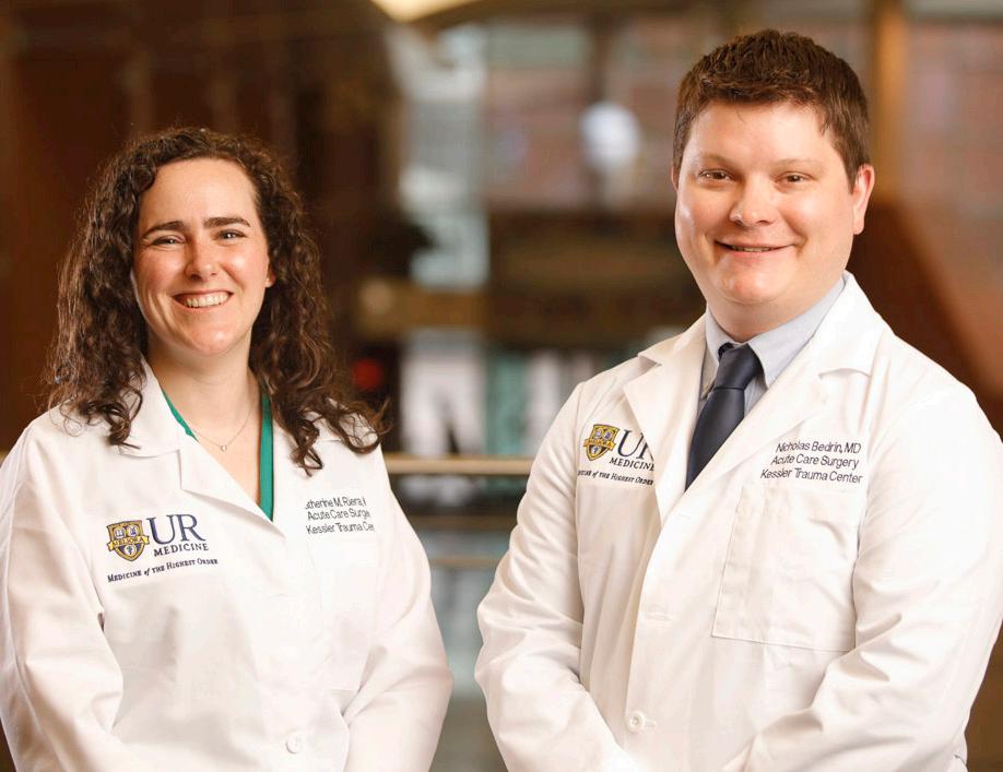 • Our program remains actively involved in multiple society-sponsored multi-institutional trials, multiple ongoing local research projects, and the development of two societysponsored practice management guidelines. The Kessler Trauma Center is the lead institution in the Upstate Acute Care Surgery Research Collaborative, a group of Upstate, New York trauma centers that meets on a regular basis to facilitate multicenter research projects and discuss best practices.