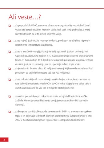 Ali veste…? ❏❏ ….da po podatkih WHO, svetovne zdravstvene organizacije, v razvitih državah vsako leto zaradi okužbe s hrano in vodo zboli vsak tretji prebivalec, v manj razvitih državah pa je to število še precej večje.