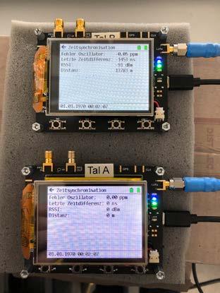 Entwickelte Hardware für die LoRa-basierte Zeitsynchronisation während der Tests über die 13 km Teststrecke von Thun auf den Niesen.