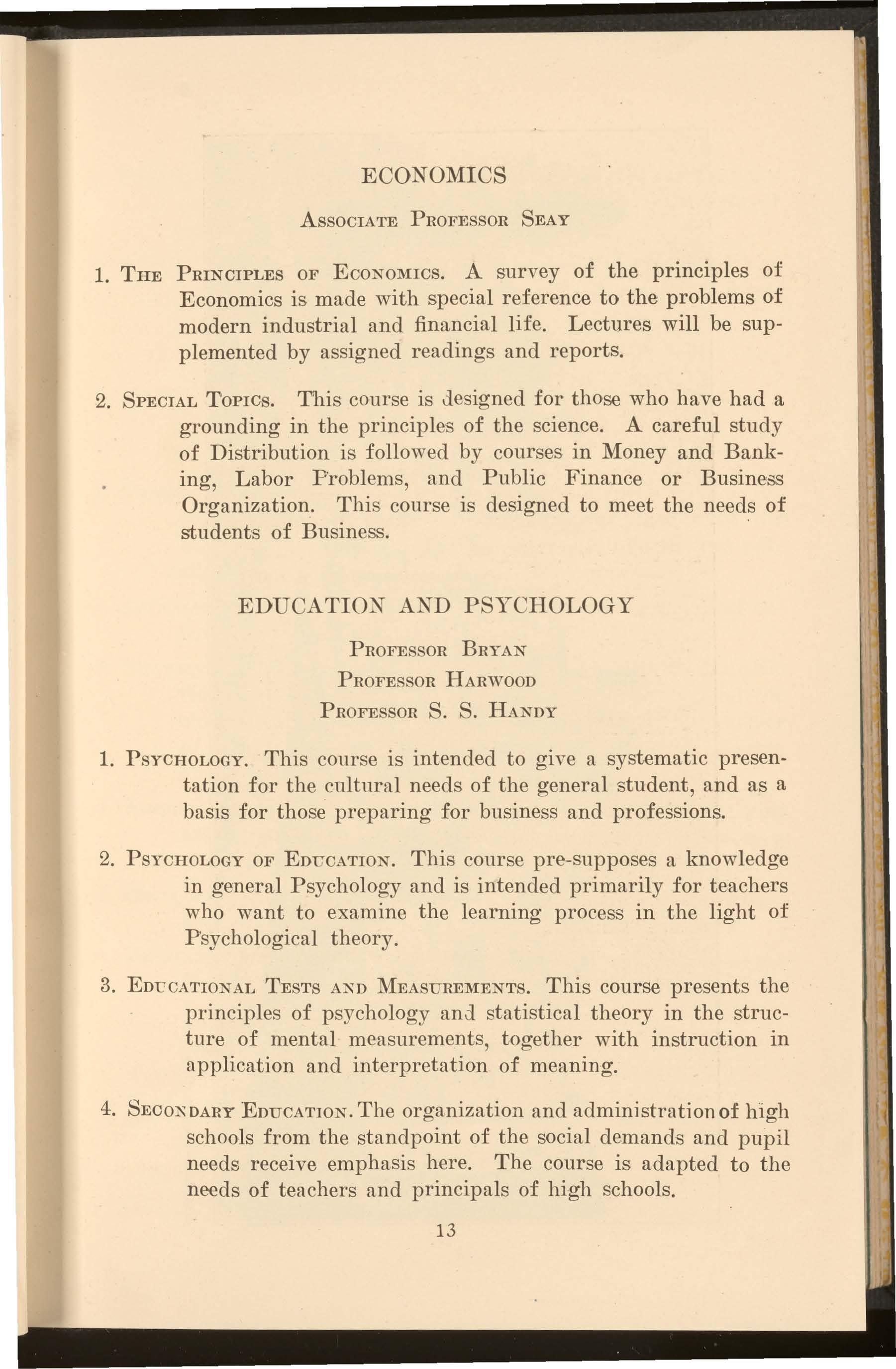 2. SPECIALToPics. This course is Jesigned for those who have had a grounding in the principles of the science. A careful study of Distribution is followed by courses in Money and Banking, Labor Problems, and Public Finance or Business Organization. This course is designed to meet the needs of students of Business.