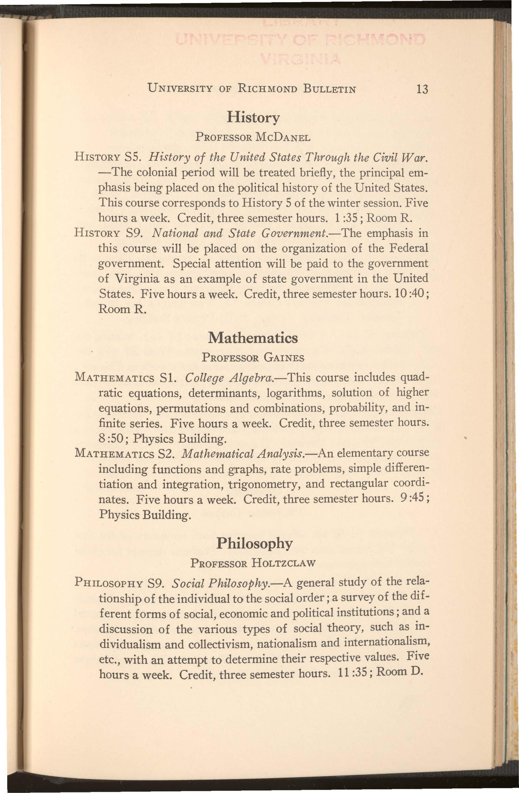 UNIVERSITYOF RICHMONDBULLETIN 11