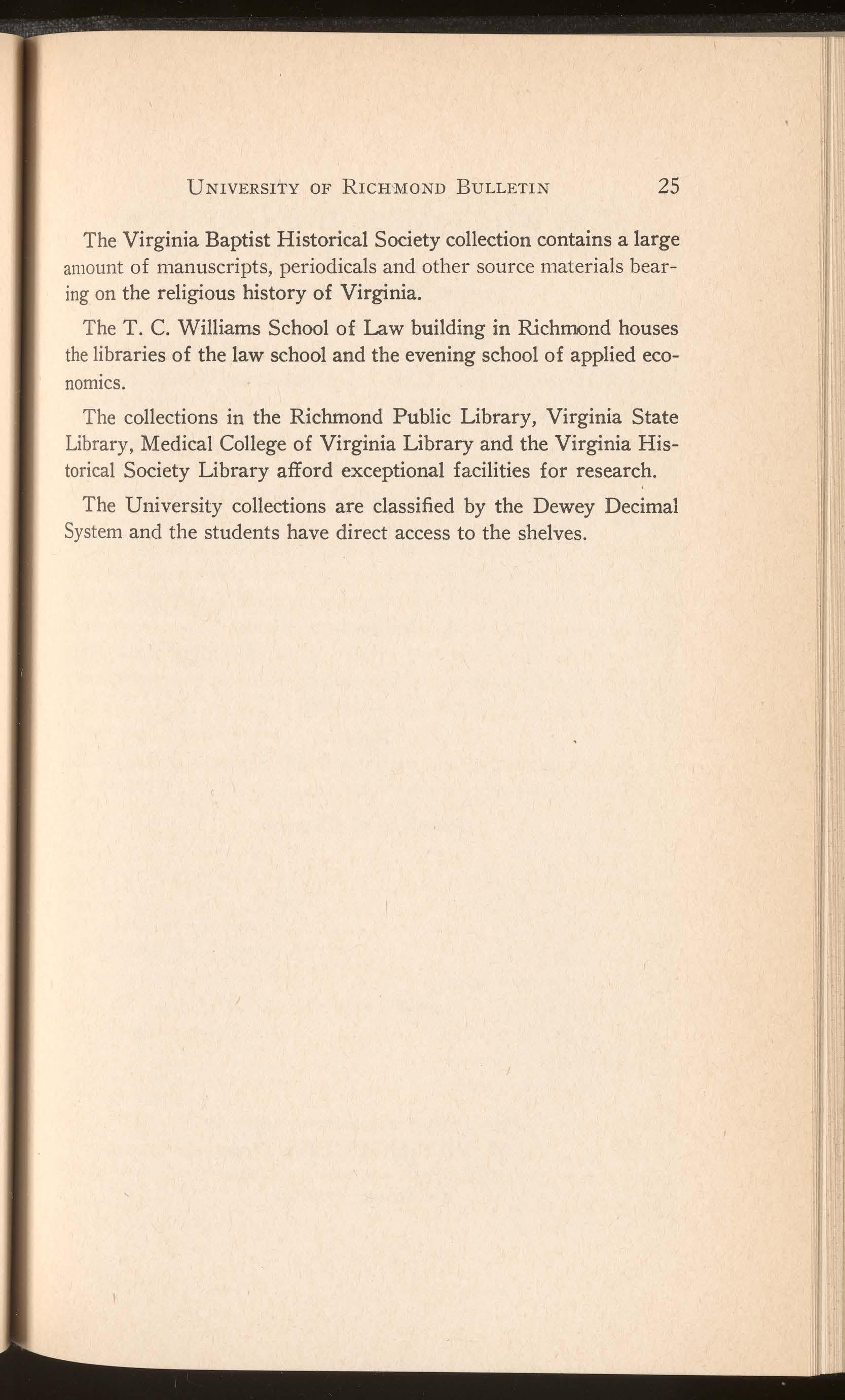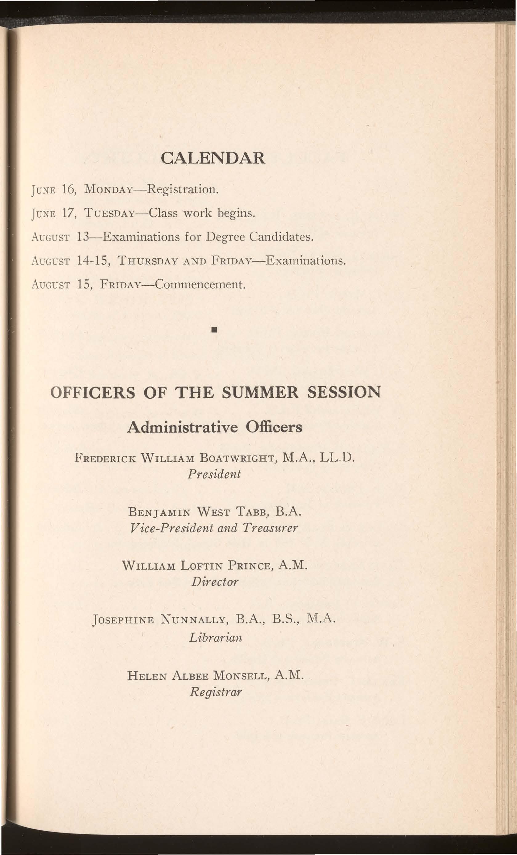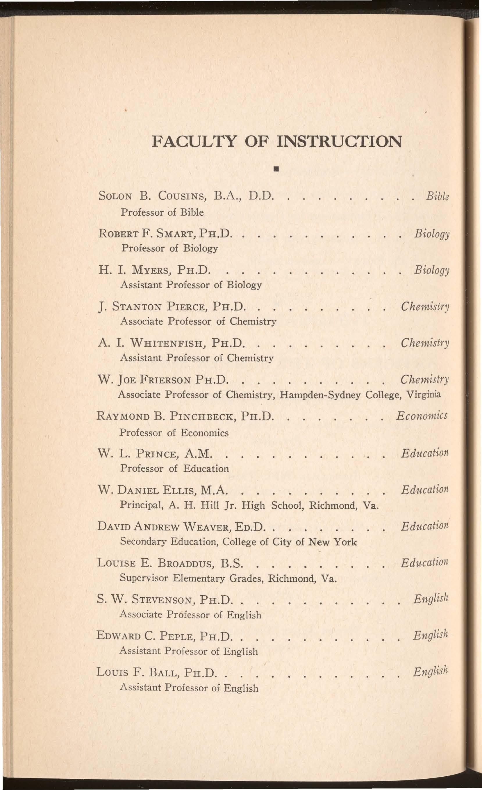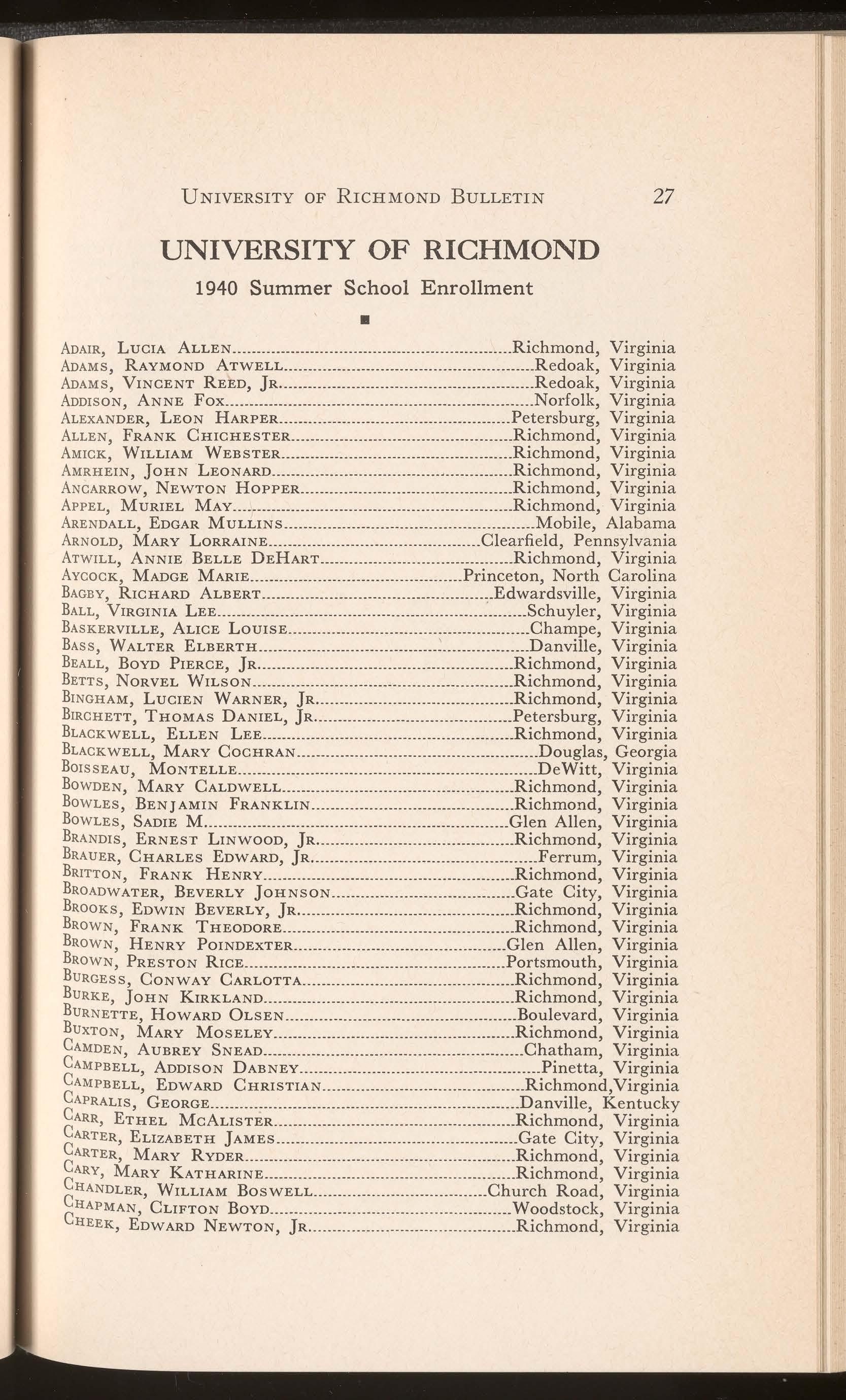 The Summer Session of the University of Richmond extends through a period of nine weeks. Various courses are offered designed to meet the needs of the following :