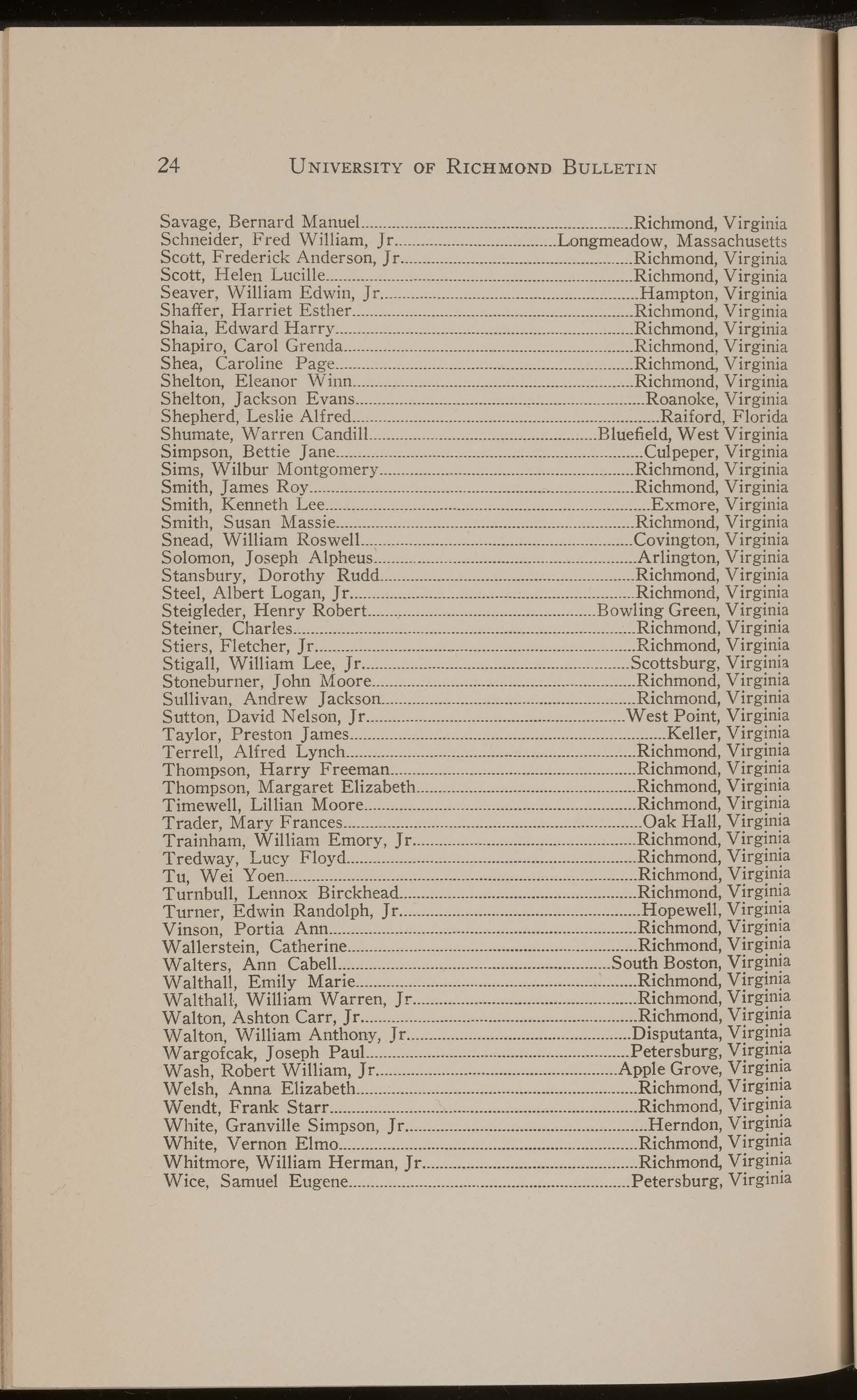 Wood, Norman Bremer ................................................................Richmond, Virginia