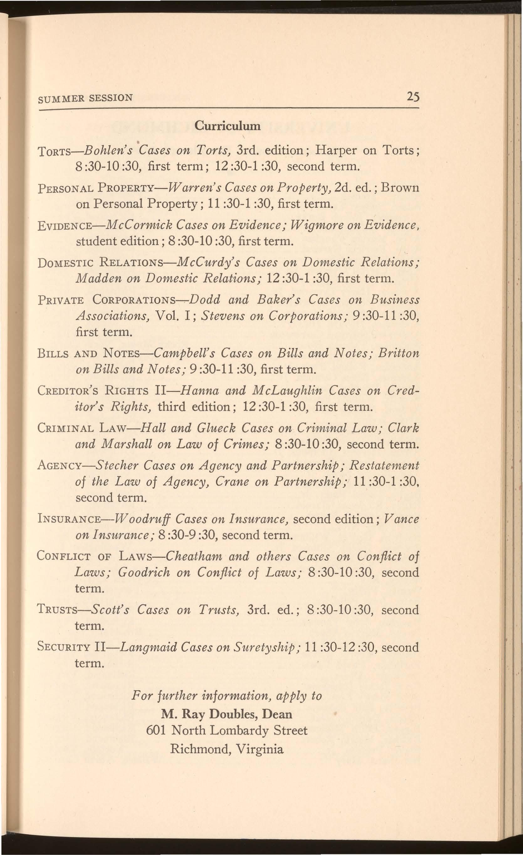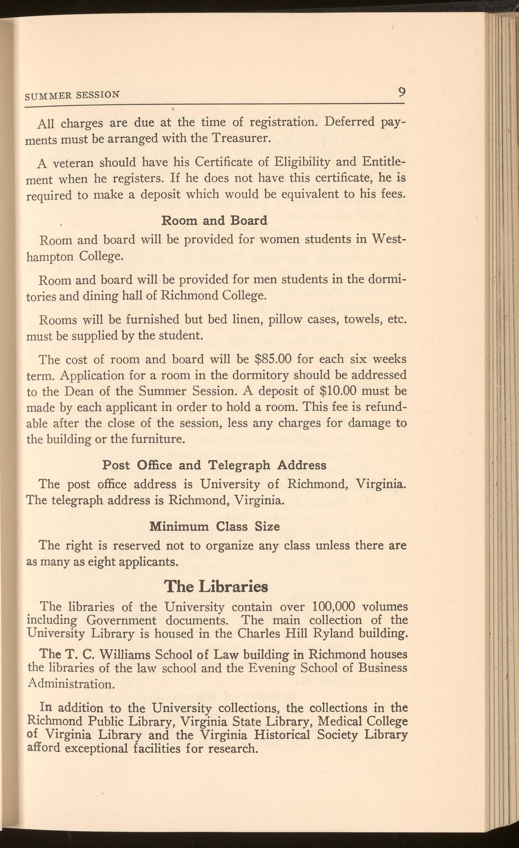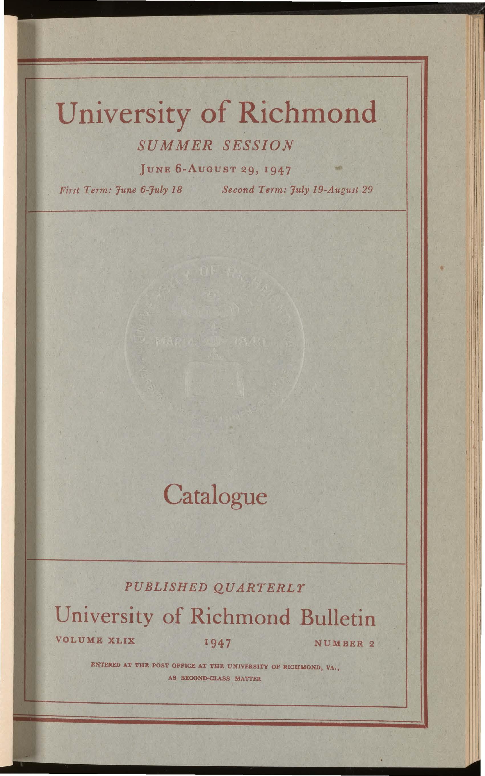 The Summer Session of 1947 will be conducted in the buildings of Richmond College-the men's college in the University of Richmond.
