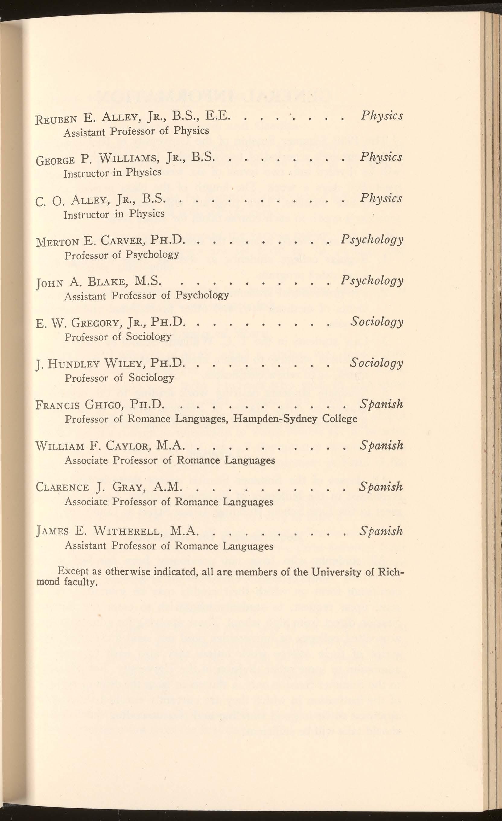 Except as otherwise indicated, all are members of the University of Richmond faculty.