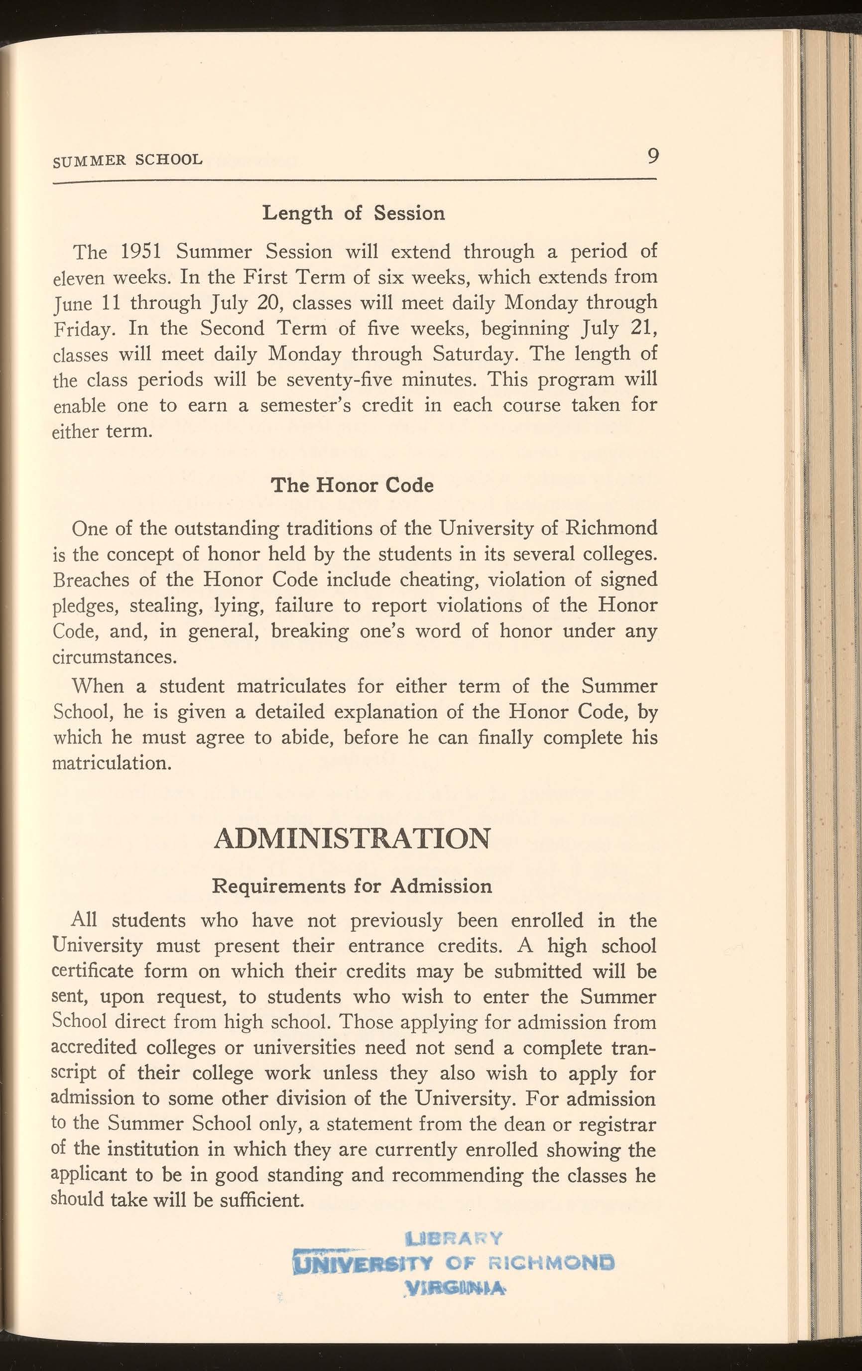 The Summer School is usually conducted in the buildings of Richmond College, the office of the Dean of the Summer School being located on the second floor of Robert Ryland Hall. In this
