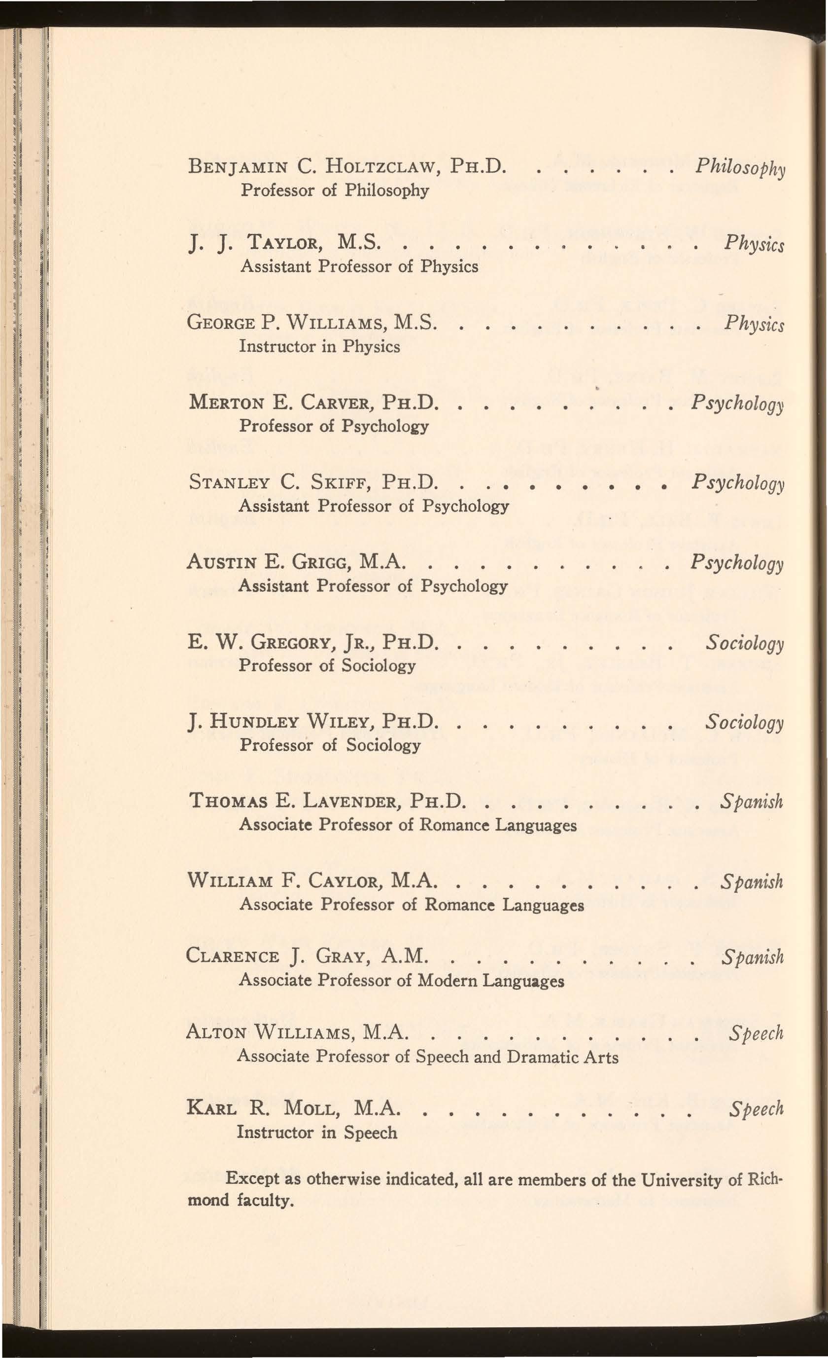 Except as otherwise indicated, all are members of the University of Richmond faculty.