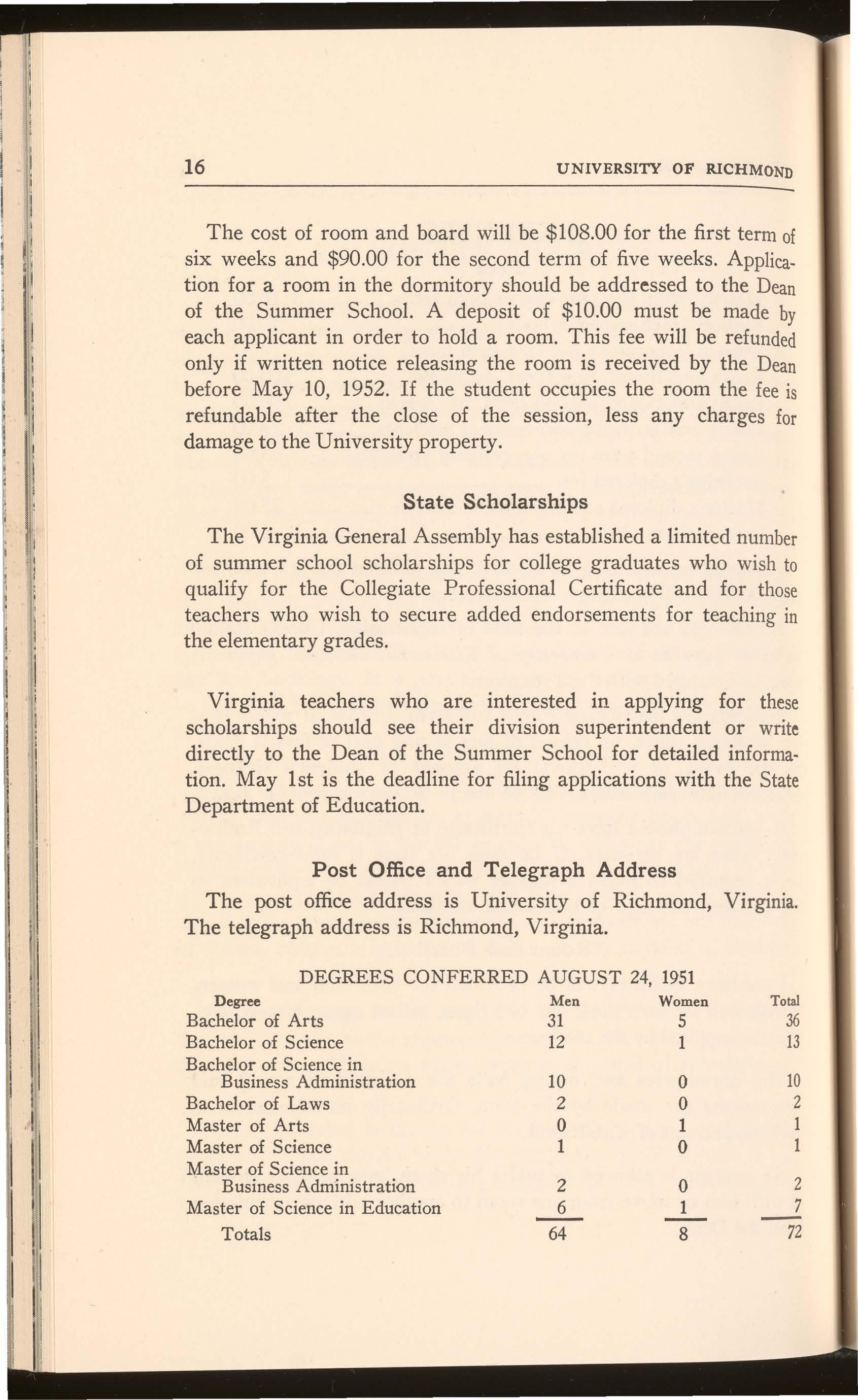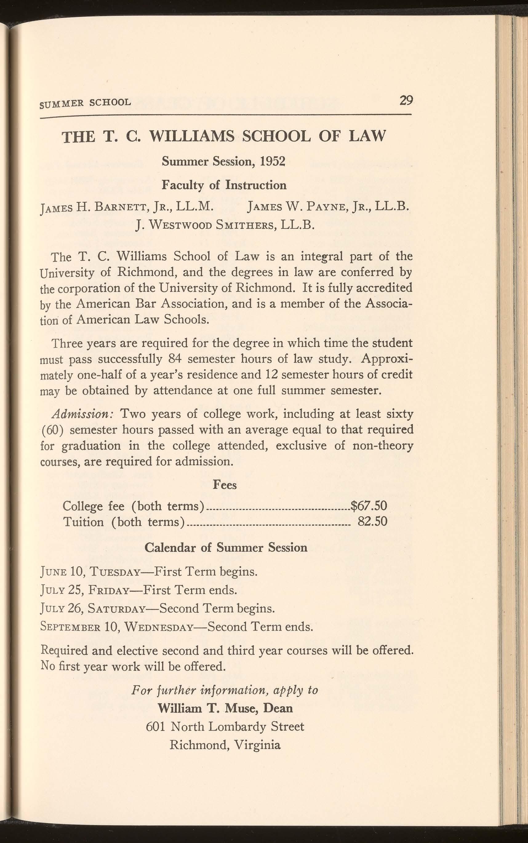 The Summer School is usually conducted in the buildings of Richmond College, the office of the Dean of the Summer School being located on the second floor of Robert Ryland Hall. In this