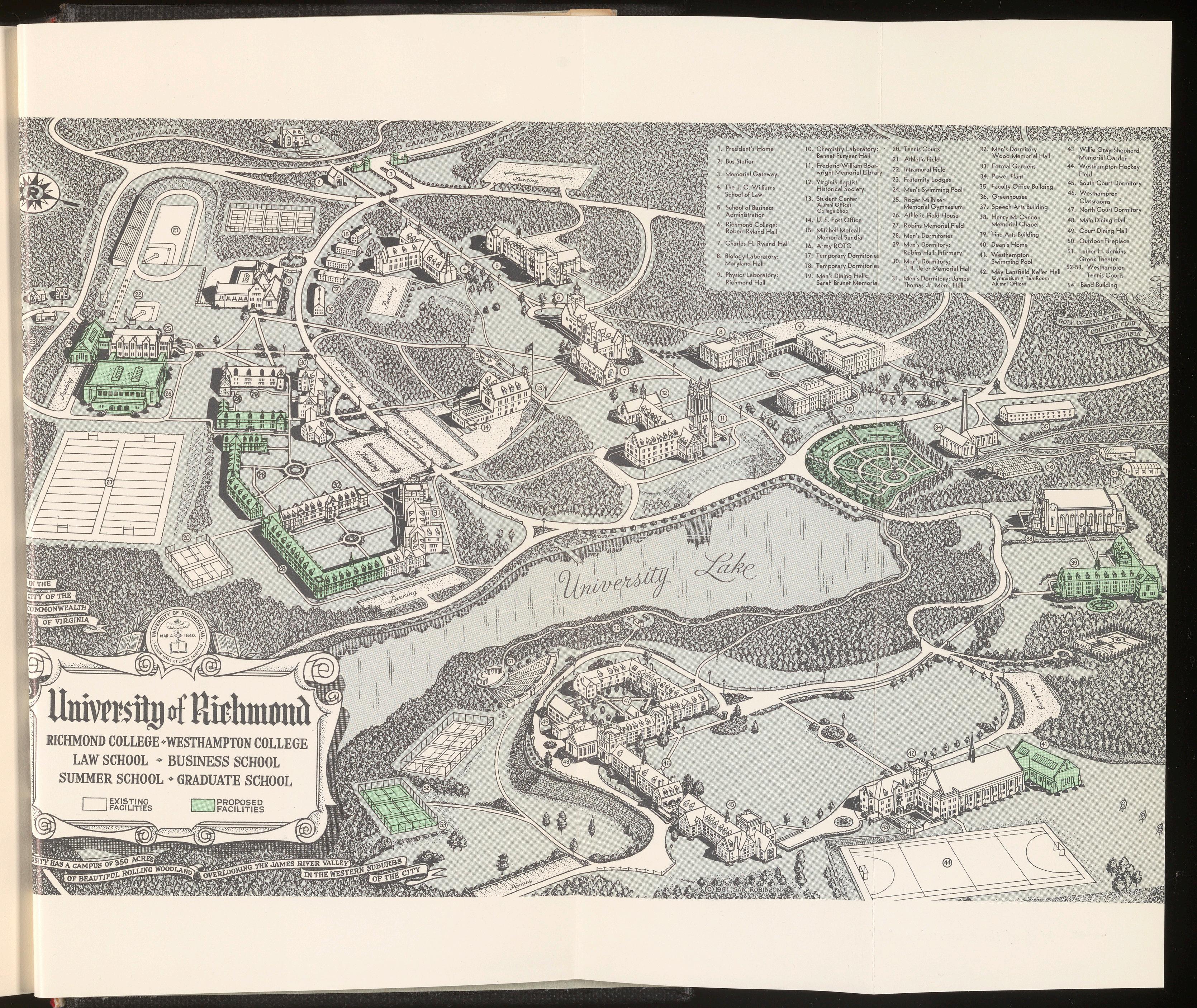 the imposing Frederic William Boatwright Memorial Library, which is equipped with the most modern facilities for study and research. Moreover, the collections in the Richmond Public Library, the Virginia State Library, the Medical College of Virginia Library, and the Virginia Historical Society Library, all located in Richmond, afford excellent opportunities for research. Nearness to Washington enables the University to obtain quickly rare books and pamphlets from the Library of Congress.
