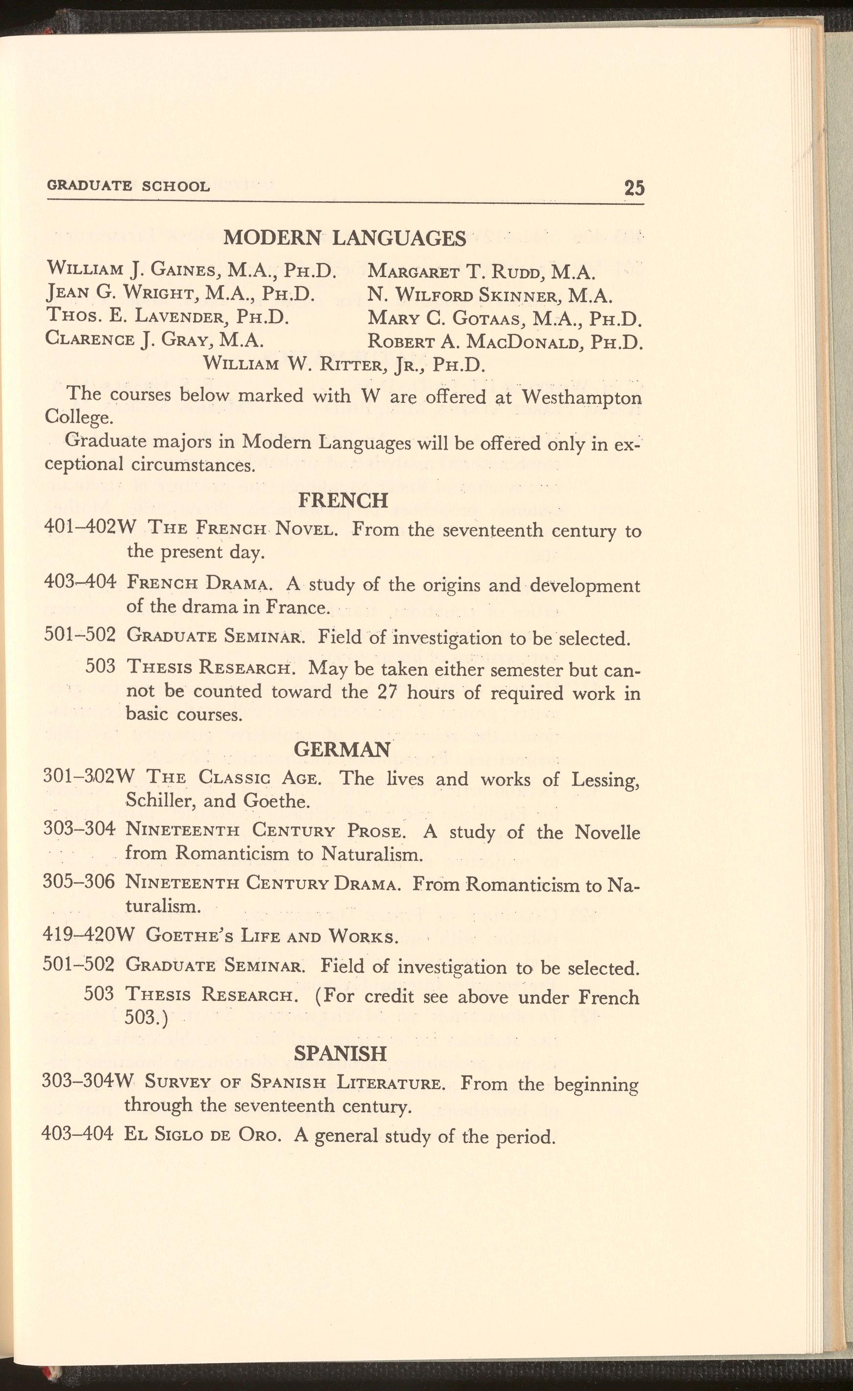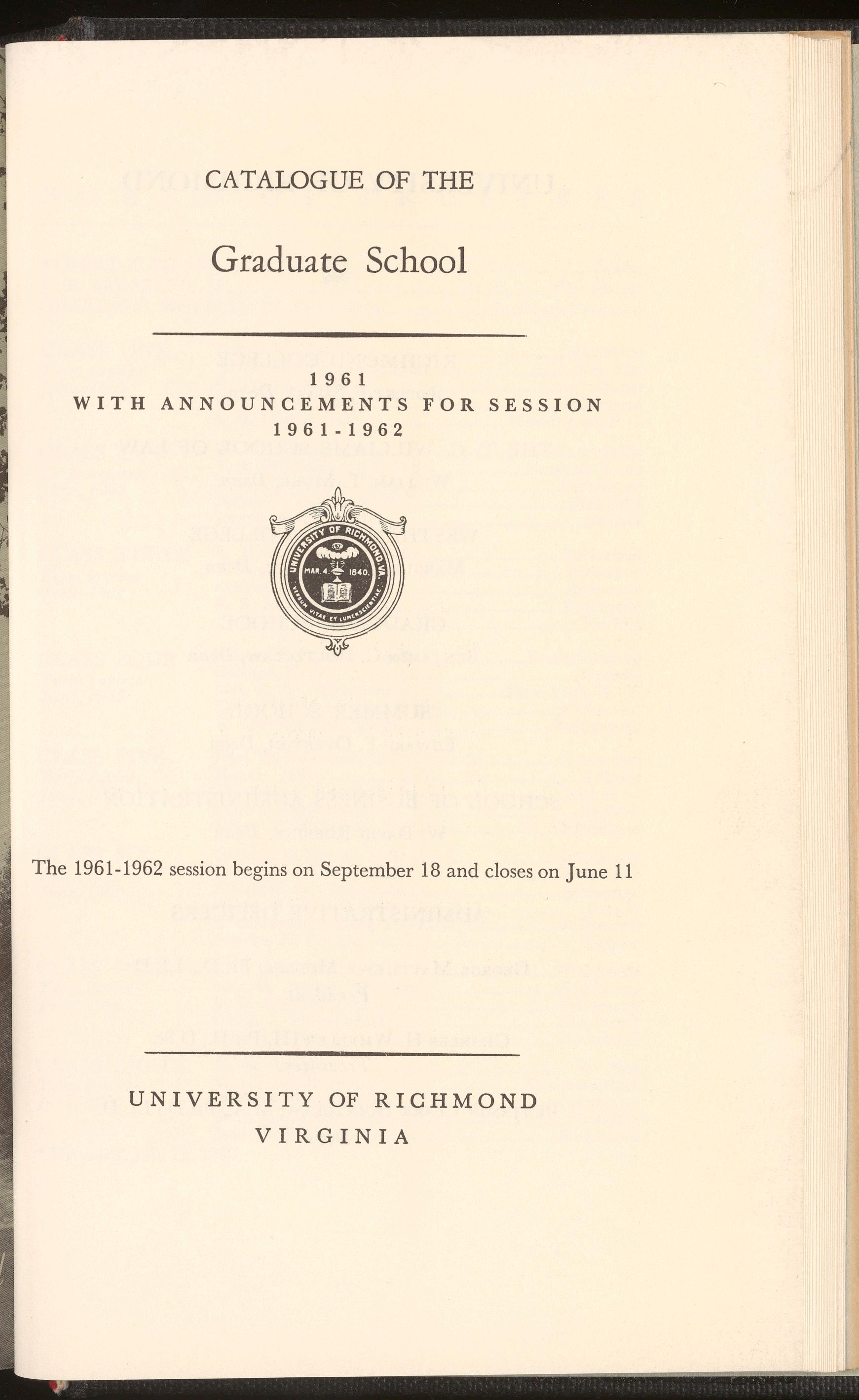 The University of Richmond offers graduate courses in certain departments to qualified students, and confers the degrees of Master of Arts, Master of Science, Master of Science in Education, and Master of Science in Business Administration upon those who fulfill the requirements as outlined below. Courses leading to the degrees of Master of Arts, Master of Science, and Master of Science in Education are offered in Richmond College, Westhampton College and the Summer School; courses leading to the degree of Master of Science in Business Administration are offered in the School of Business Administration and in the Summer School.