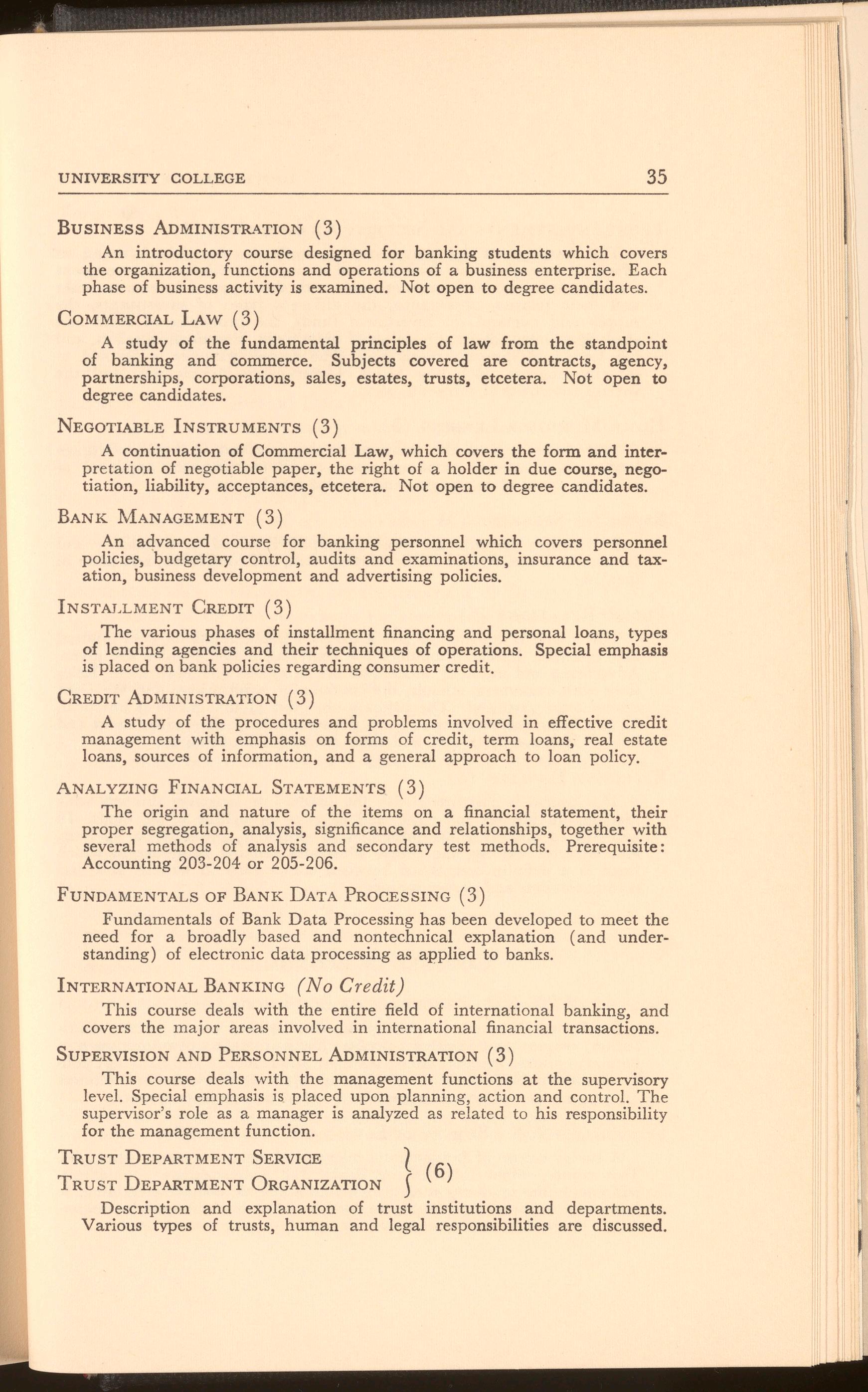 knowledge, and graduates of university schools of commerce who wish to specialize further in particular fields of activity, have found benefit in the training provided. College graduates can also obtain credits leading to the degrees Master of Commerce, and Master of Humanities.