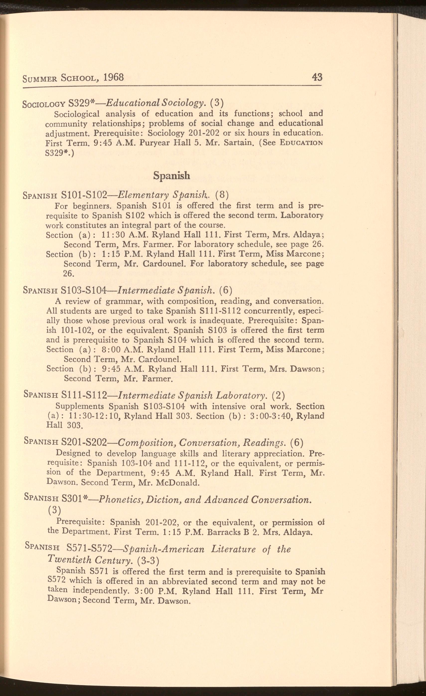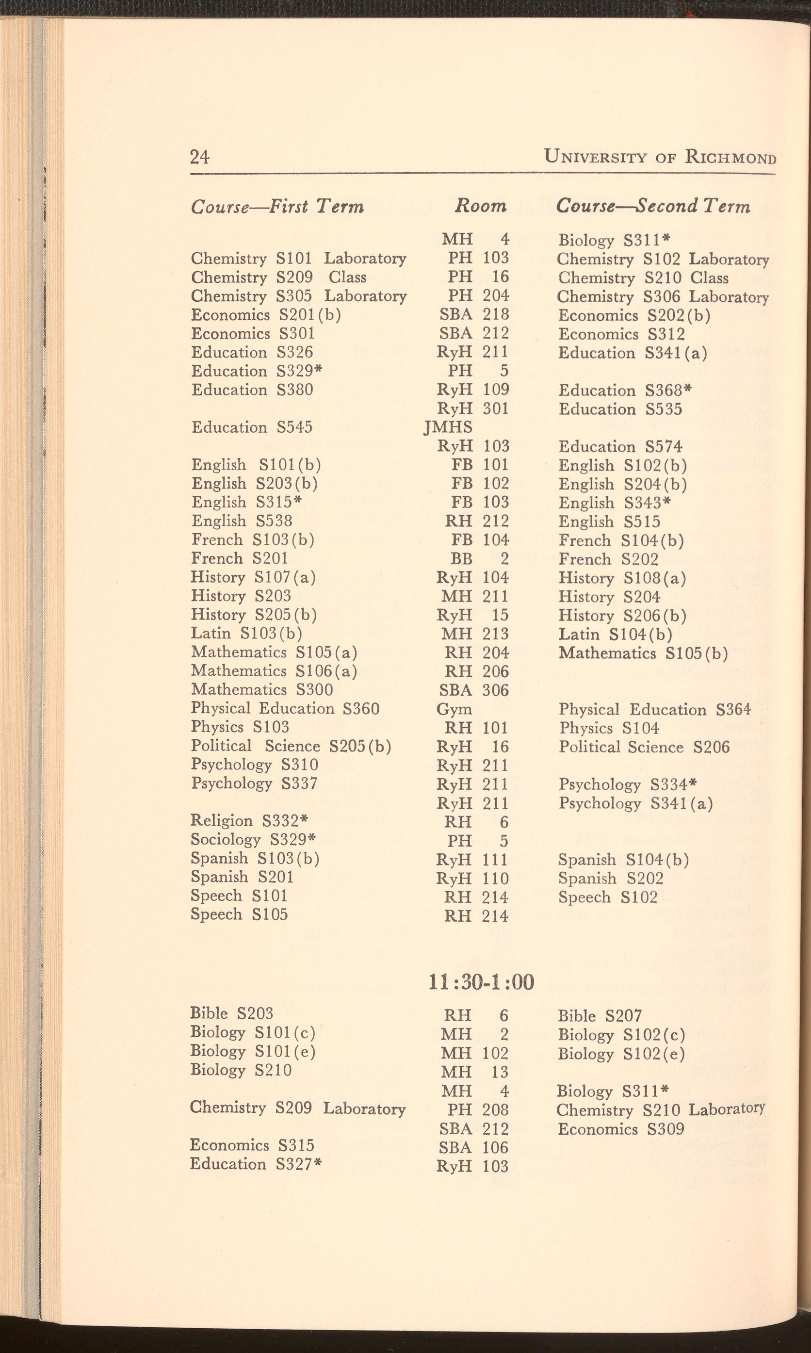 Section (a): 11: 30 A.M. Ryland Hall 111. First Term, Mrs. Aldaya ; Second Term, Mrs. Farmer. For laboratory schedule, see page 26 .