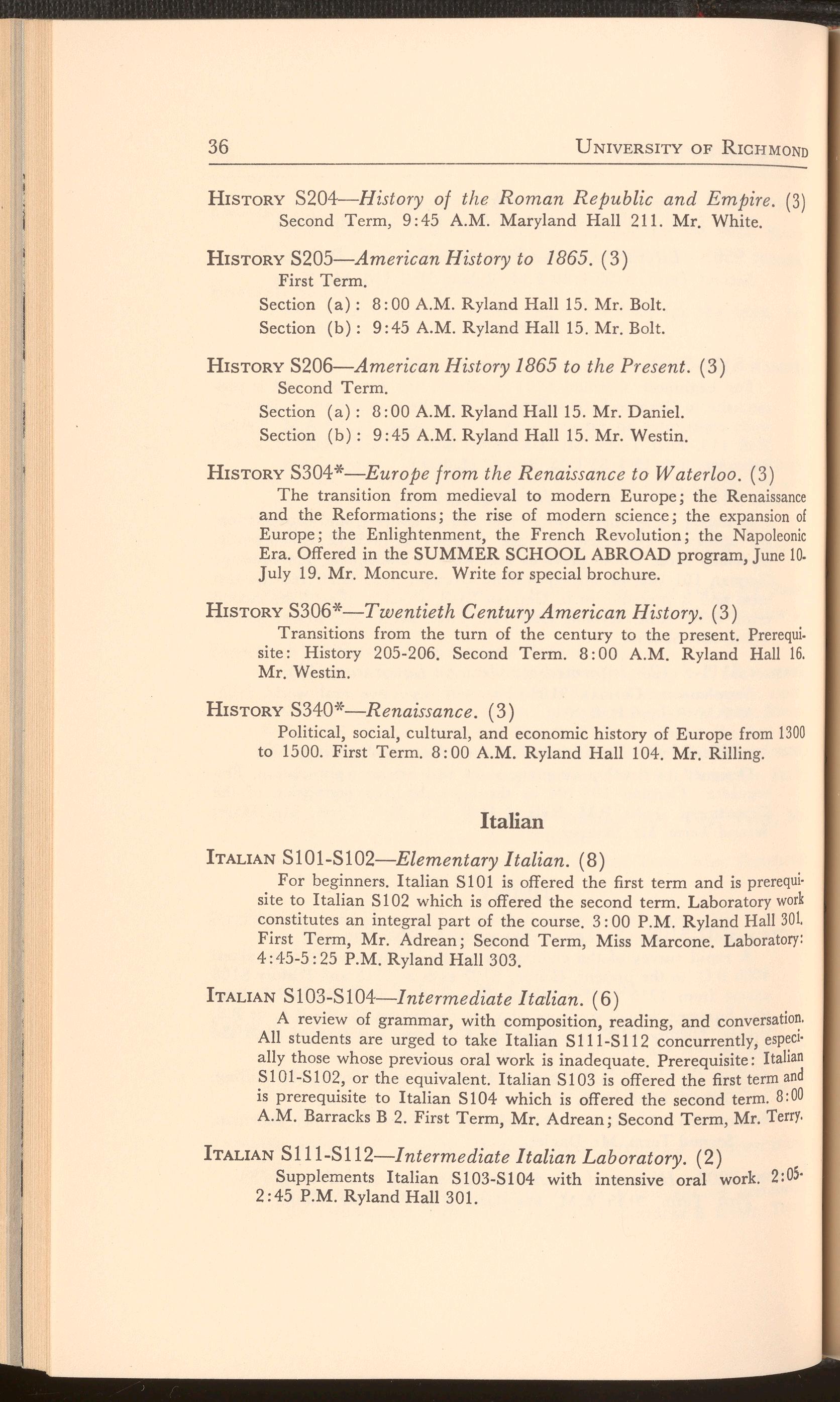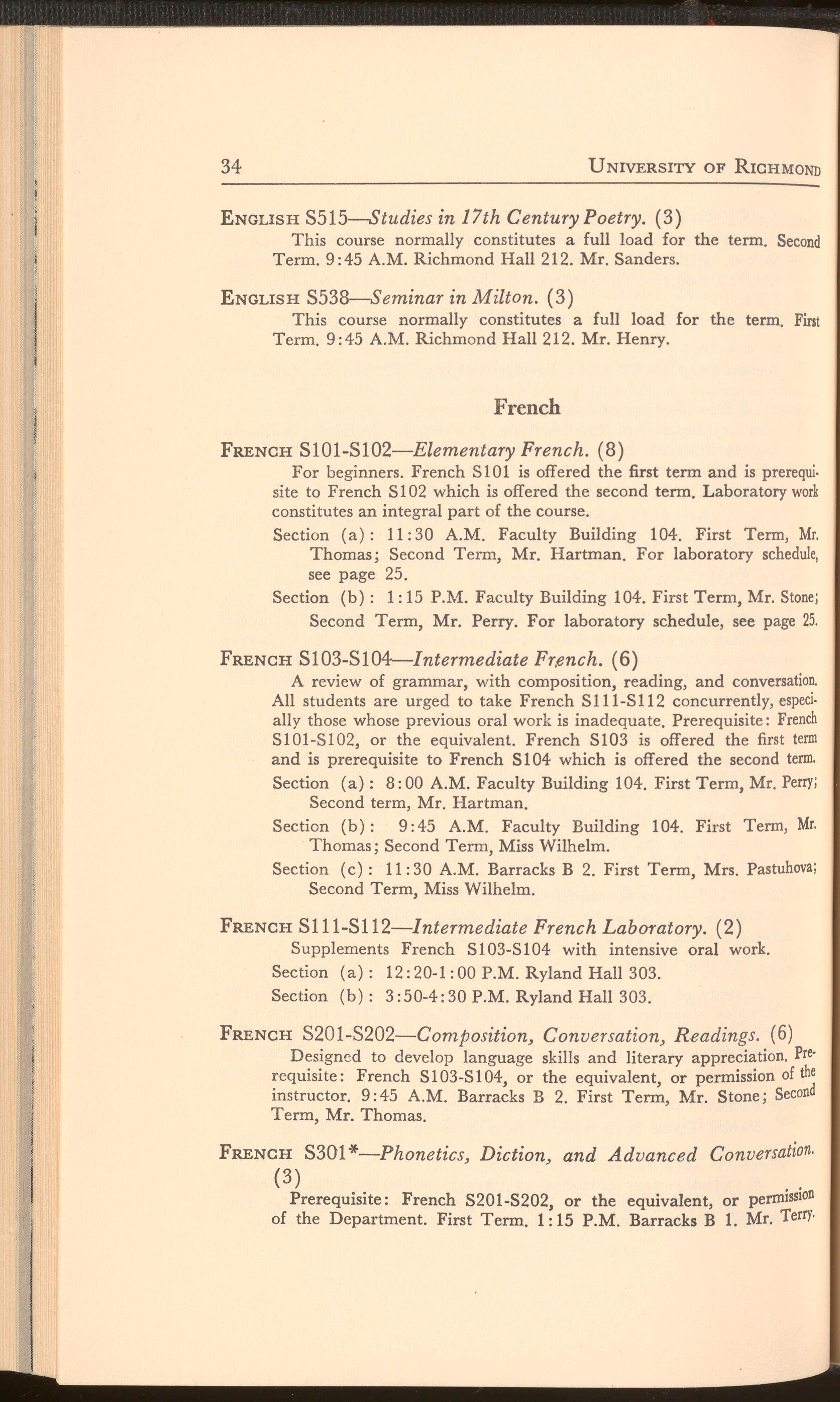 Section (a): 8:00 A.M. Ryland Hall 111. First Term, Miss Marcone ; Second Term, Mr. Cardounel.