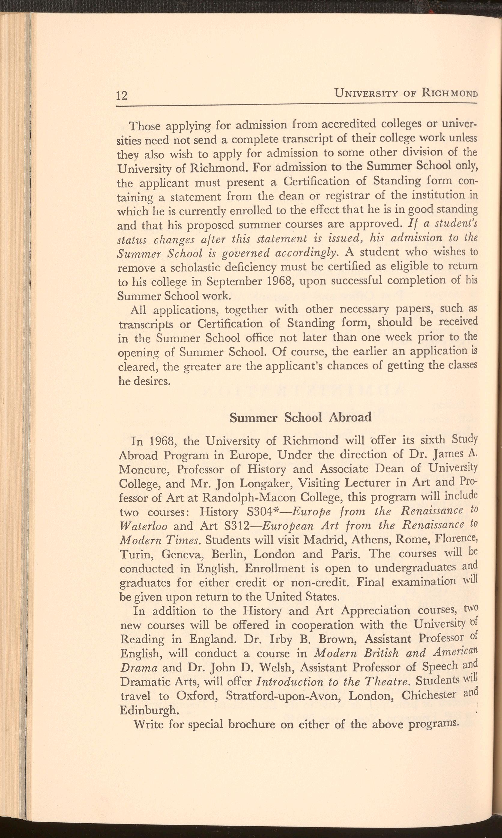 J. Current University of Richmond students need not submit Certificate af Standing or Transcript, 2. OTHER COLLEGE STUDENTS: If you are enrolled in some other accredited college, youmu your Registrar or Dean execute the Certificate of Standing (Form SS-F-2) and mail it direclll Summer School office.