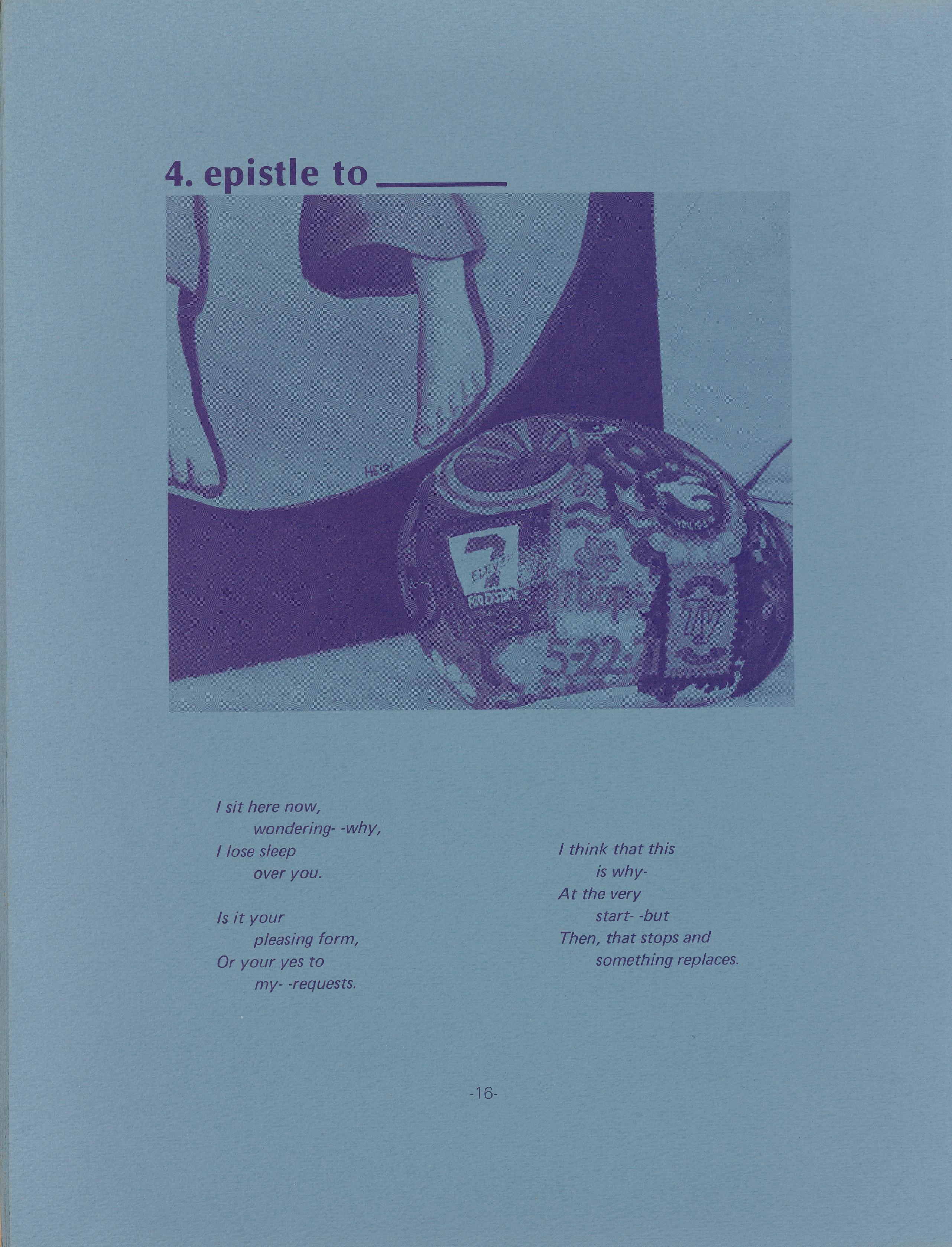 one morning, this february october night poem you mean that much to me addendum to a gathering myth and so it goes and is 4. epistle to ___ _ pause cannot look black roses return the rover field: blues for may field: reprise for may just-add-water instant prayer sincere adam untitled on snarls childhood's memories tide guess for the hairy bugger's future victim that 5:22