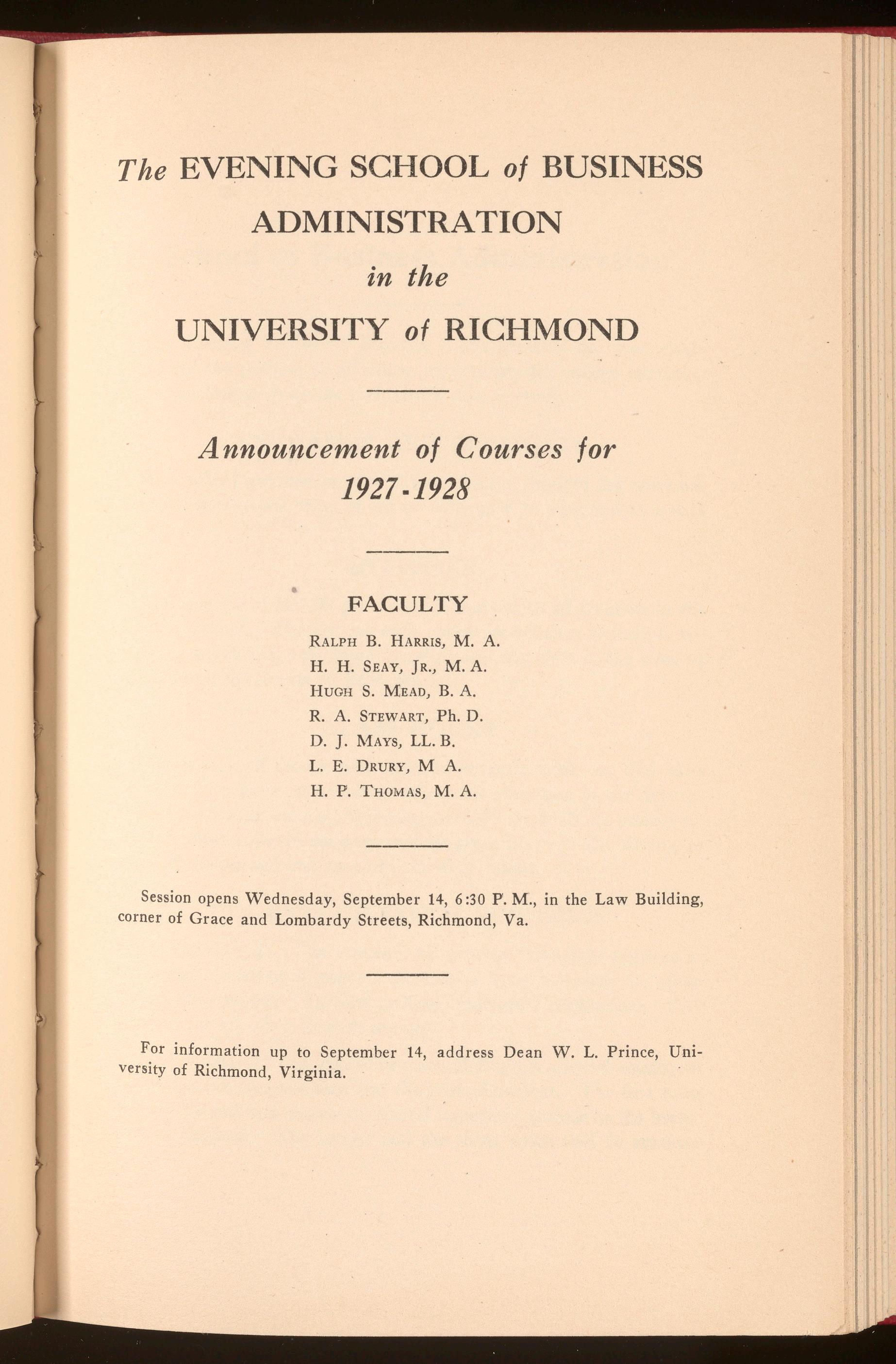 Session opens Wednesday, September 14, 6 :30 P. M , in the Law Building , corner of Grace and Lombardy Streets, Richmond, Va .