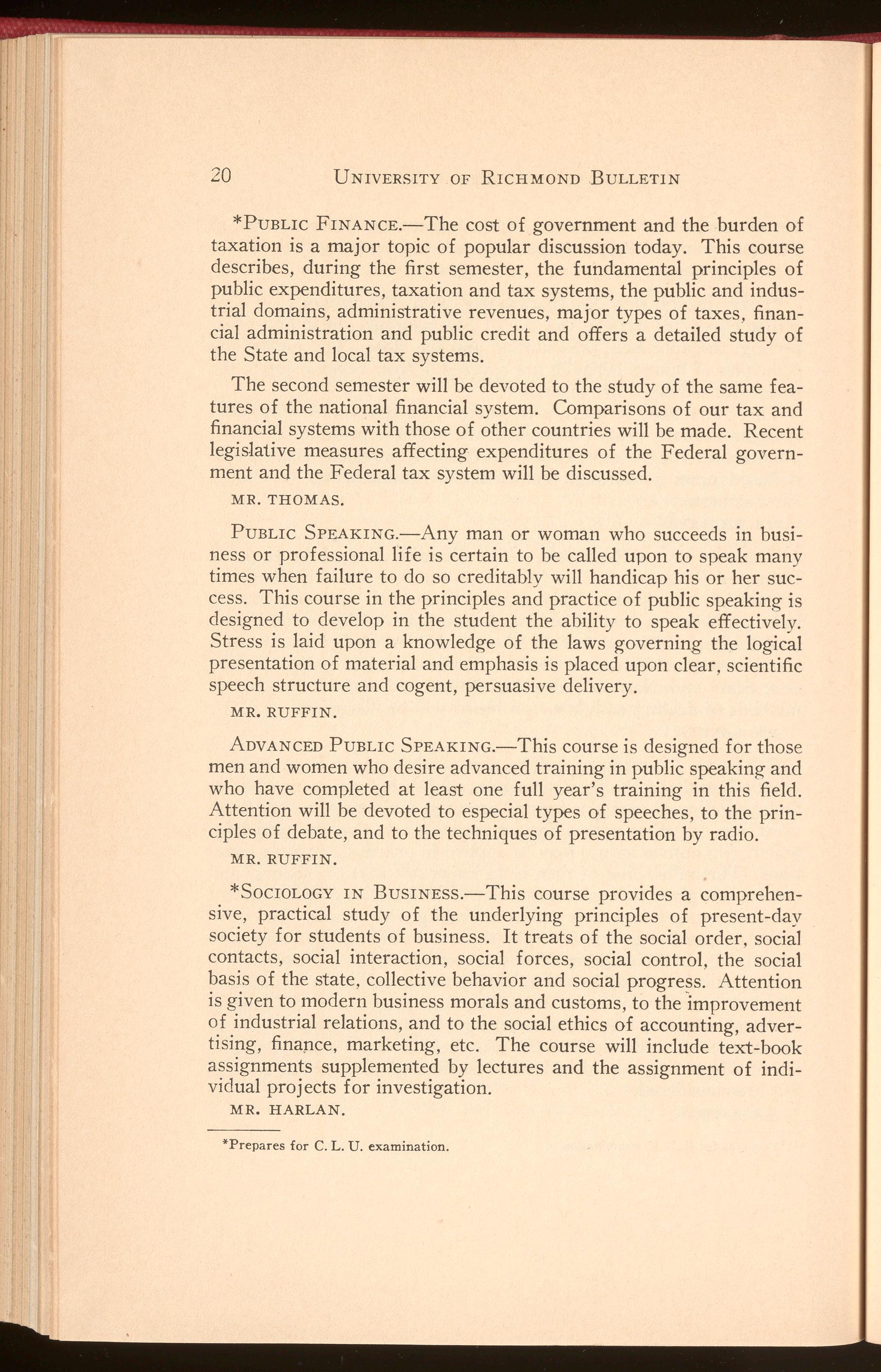 *Prepares for C. L. U. examination