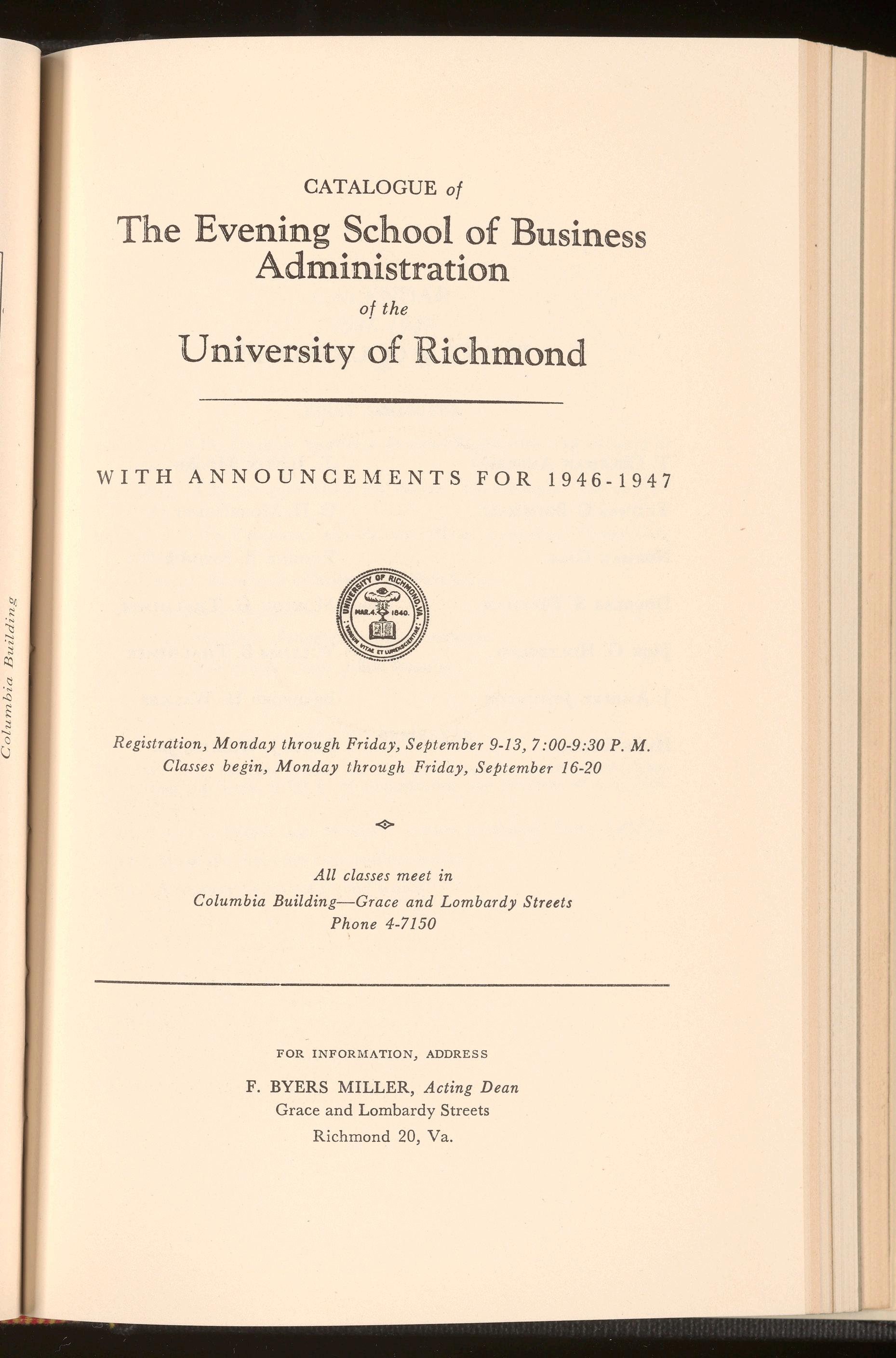 Acting Dean, Evening School of Business Administration, University of Richmond.