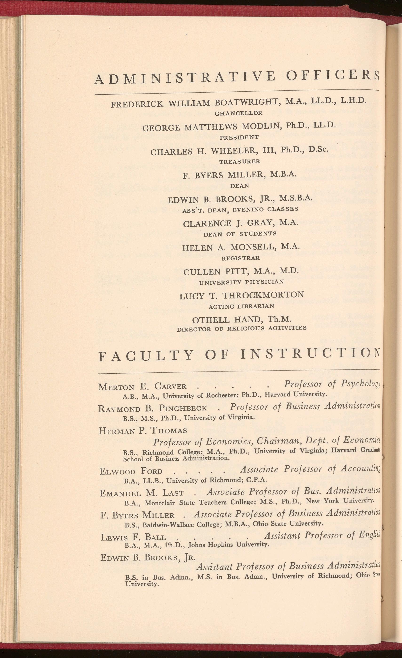F . BYERS MILLER, Dean UNIVERSITY OF RICHMOND, VIRGINIA